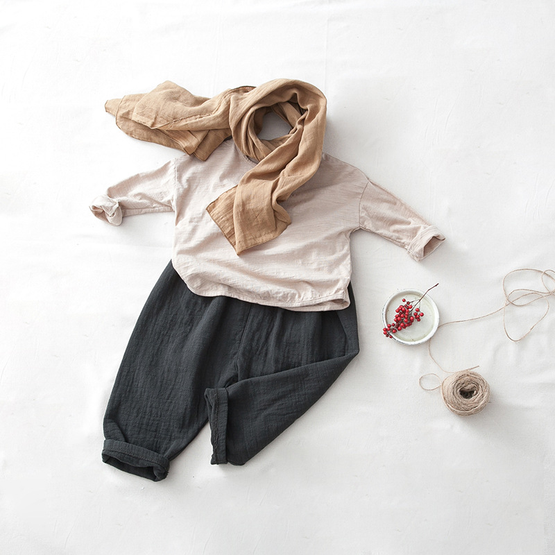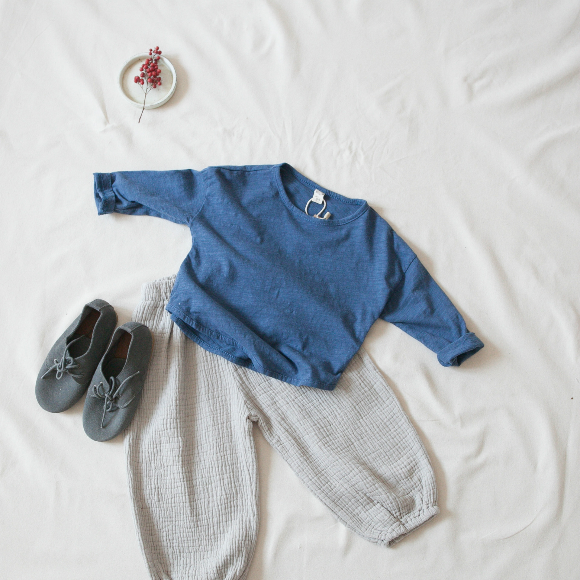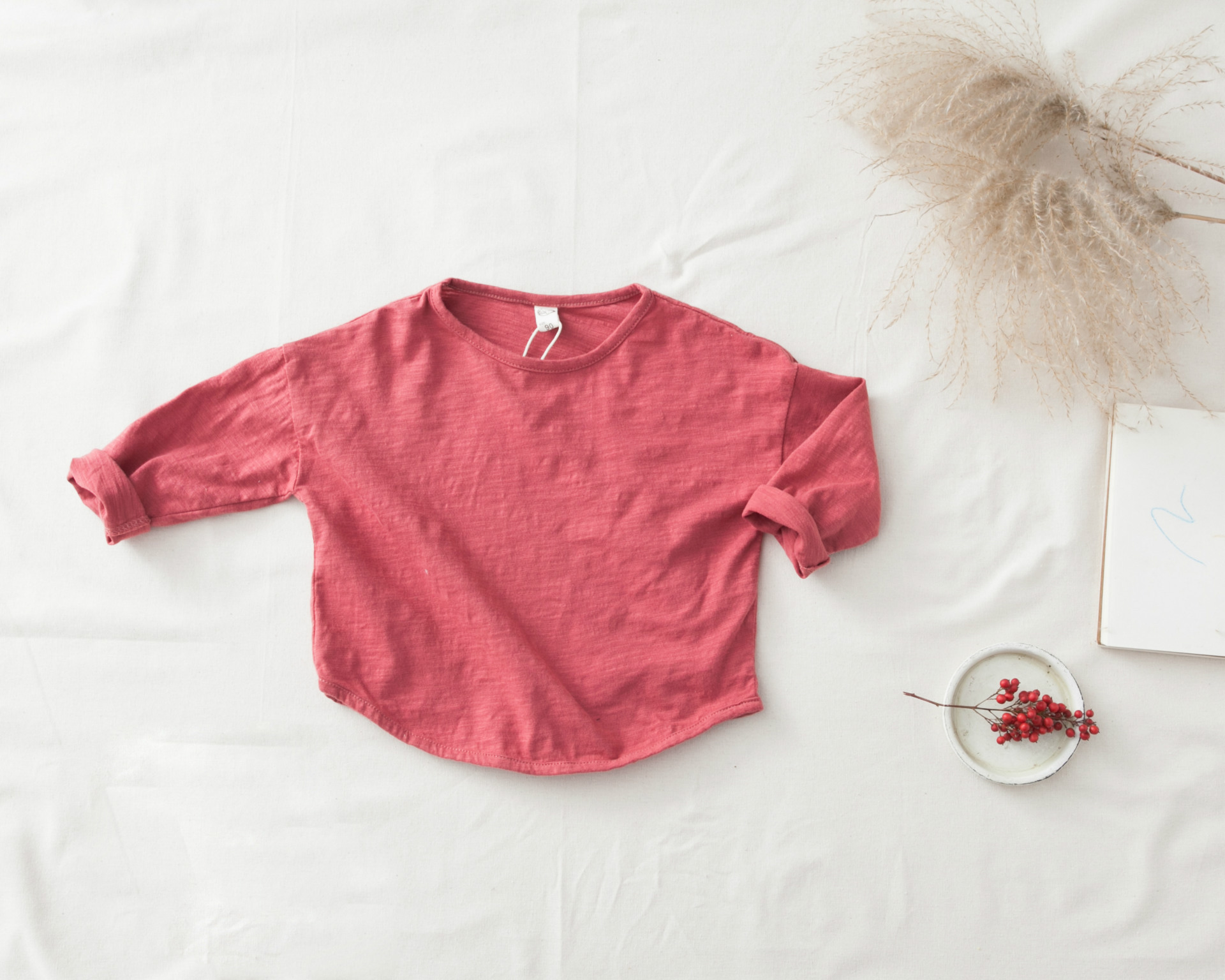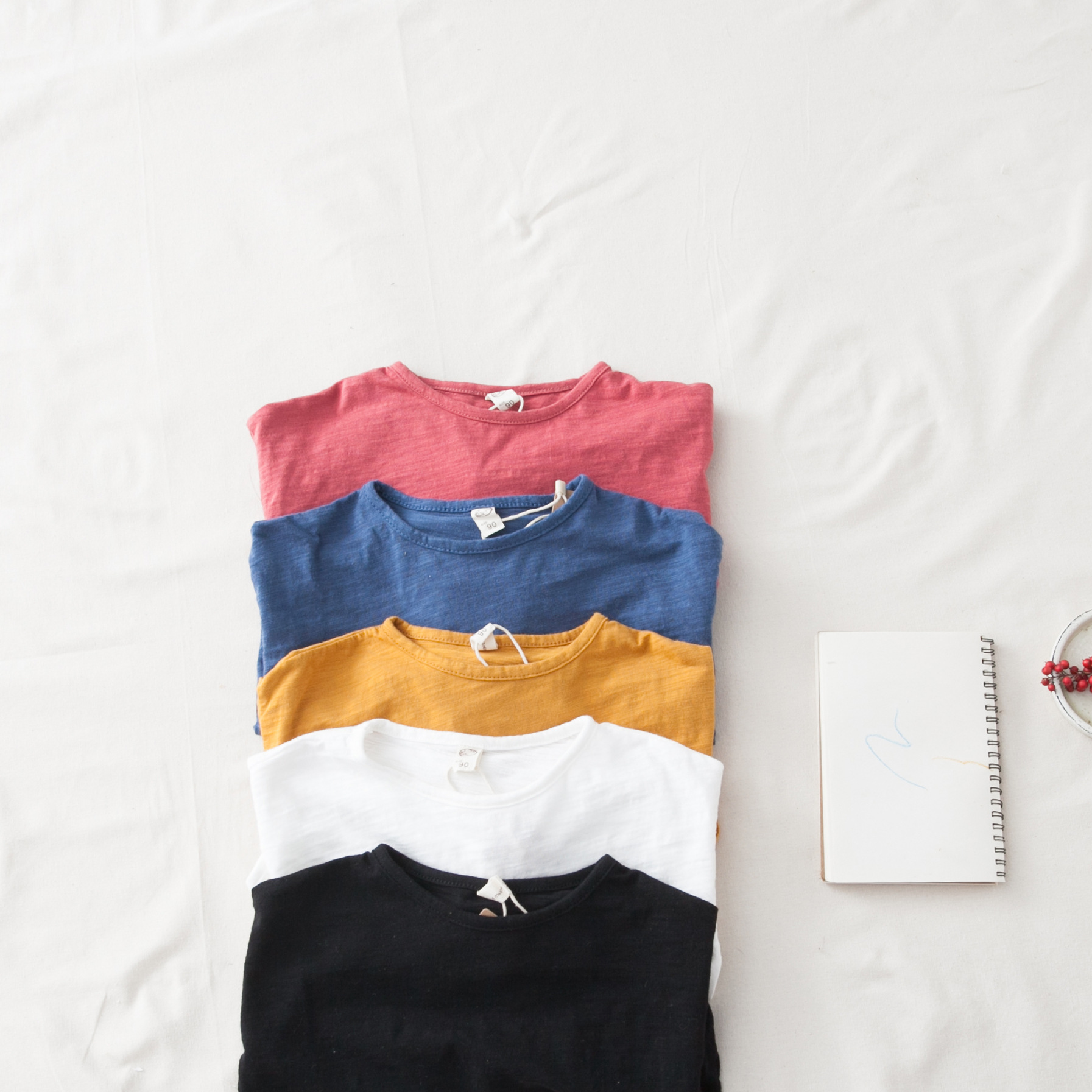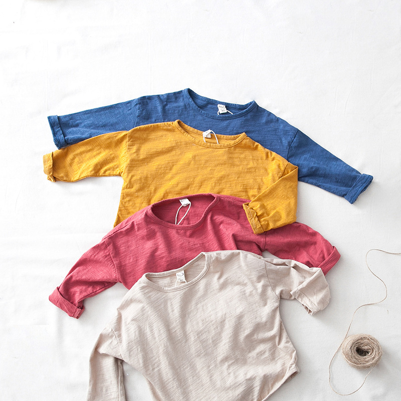 신상품 가을 아동용 기본 티셔츠 단색 여아 상의 긴팔 라운드넥 남아 티셔츠 면 소재 어린이 긴팔