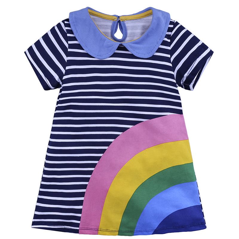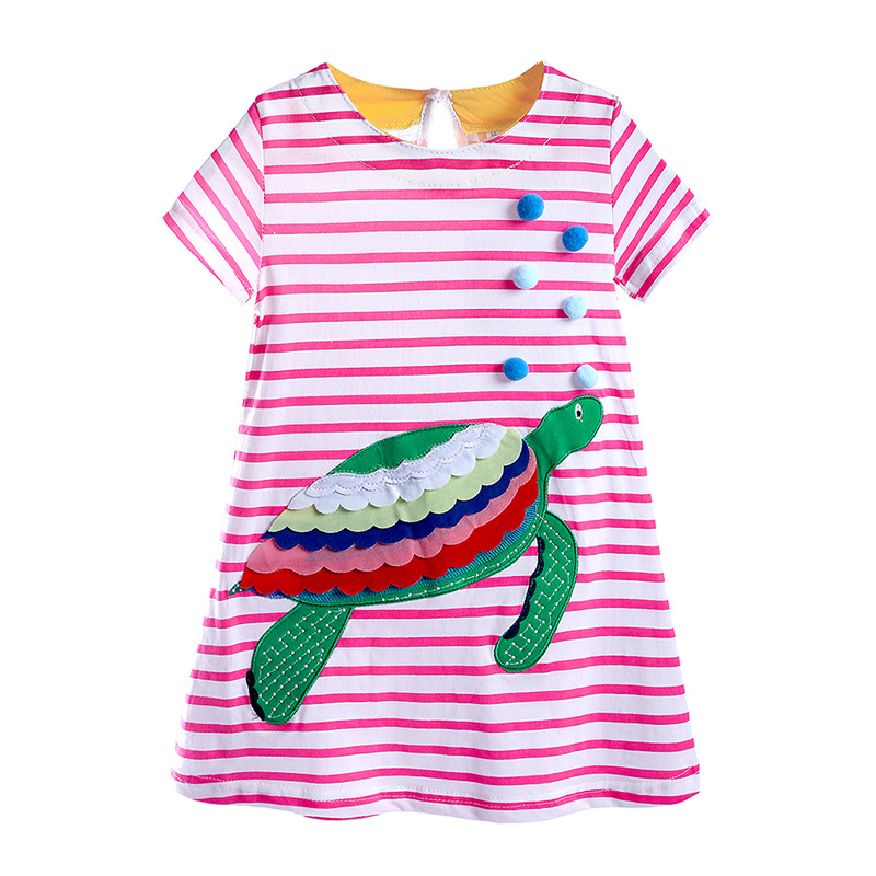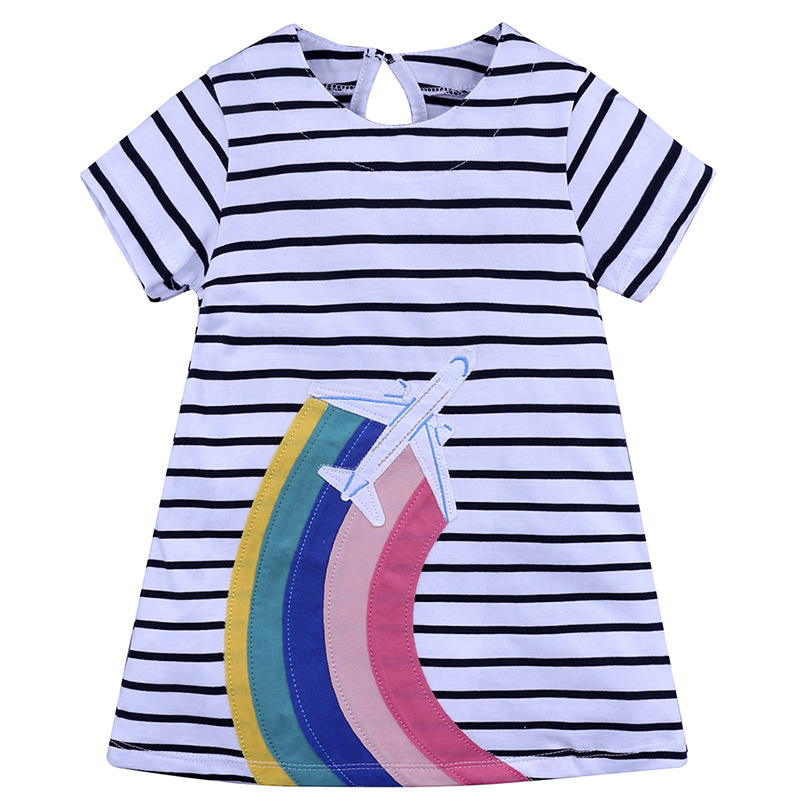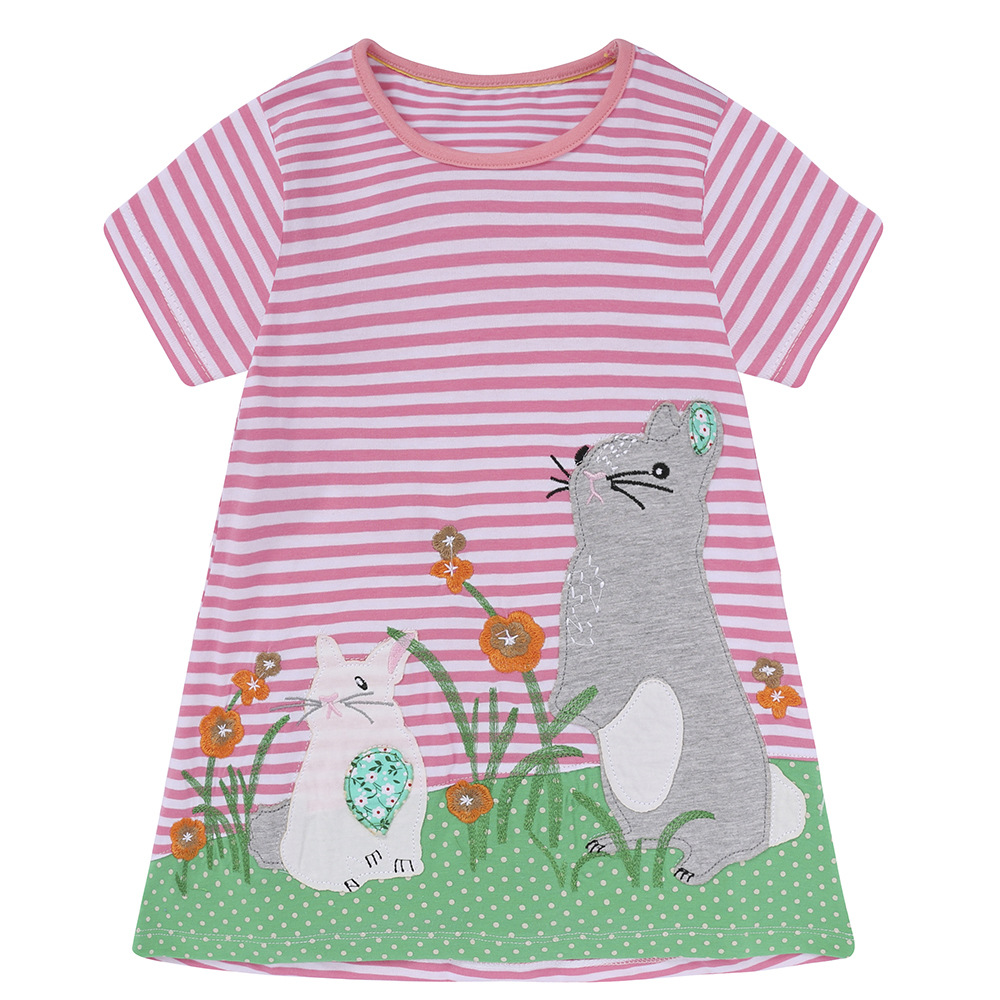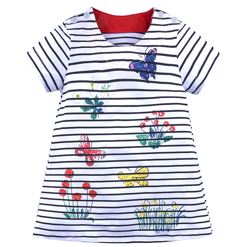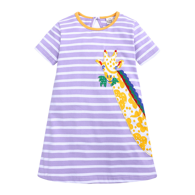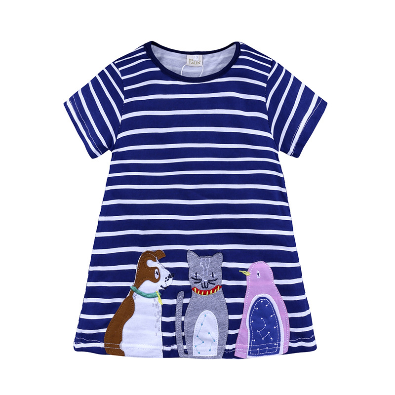 【款式】品牌童装 短袖女童连衣裙 针织纯棉童裙夏季卡通条纹长裙