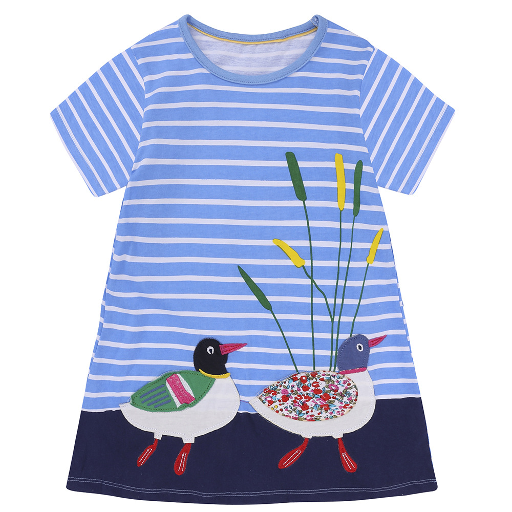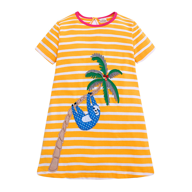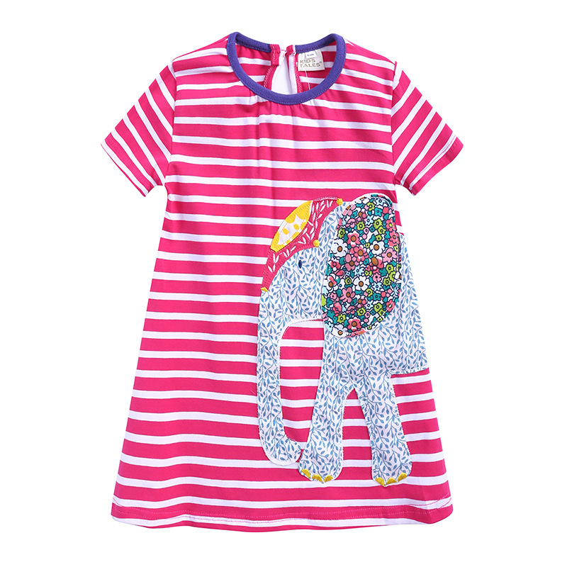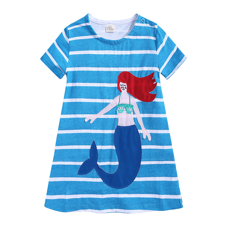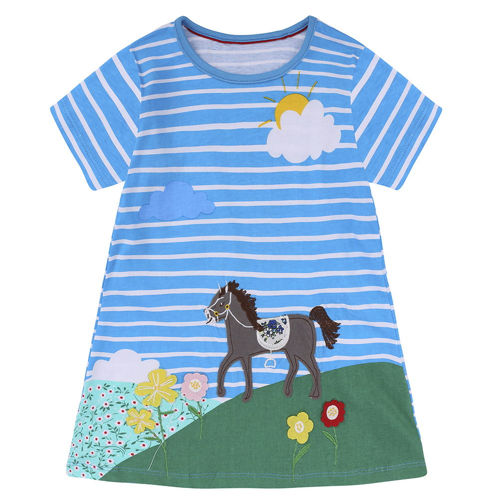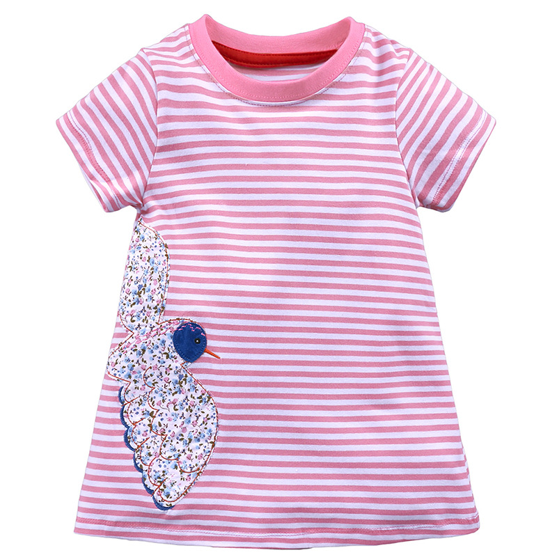 【款式】品牌童装 短袖女童连衣裙 针织纯棉童裙夏季卡通条纹长裙