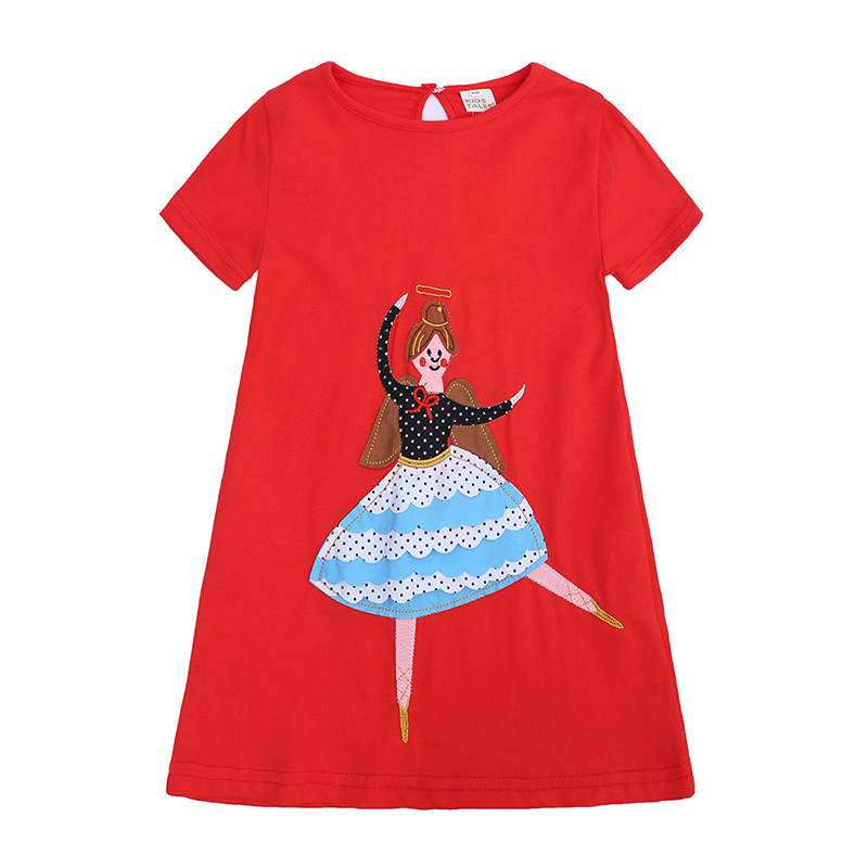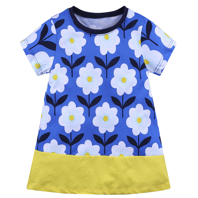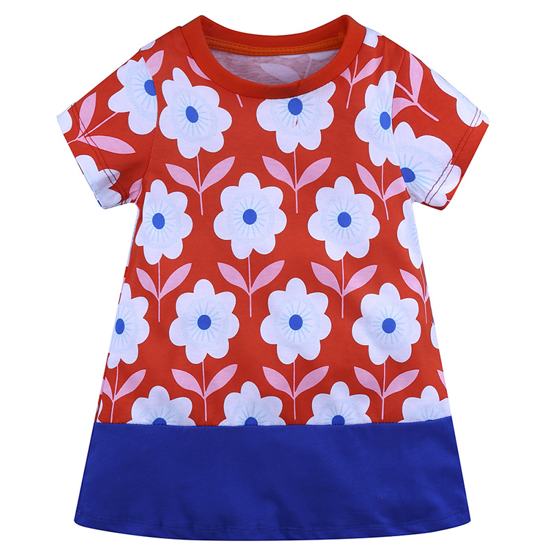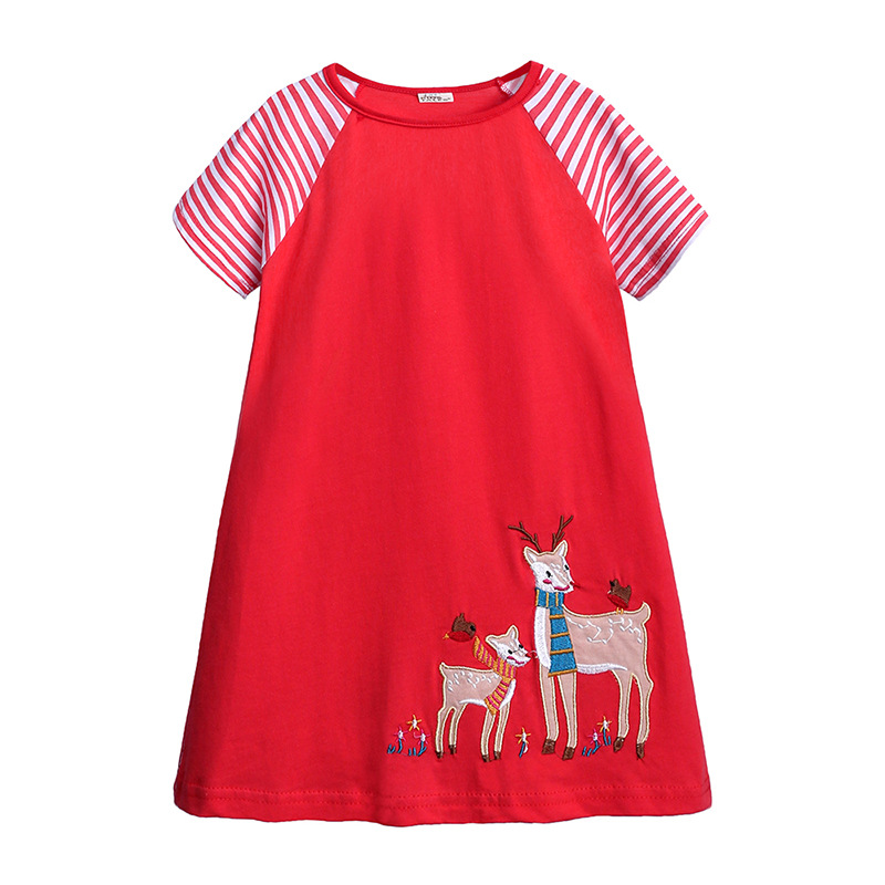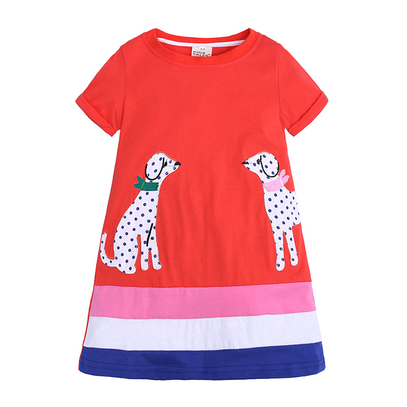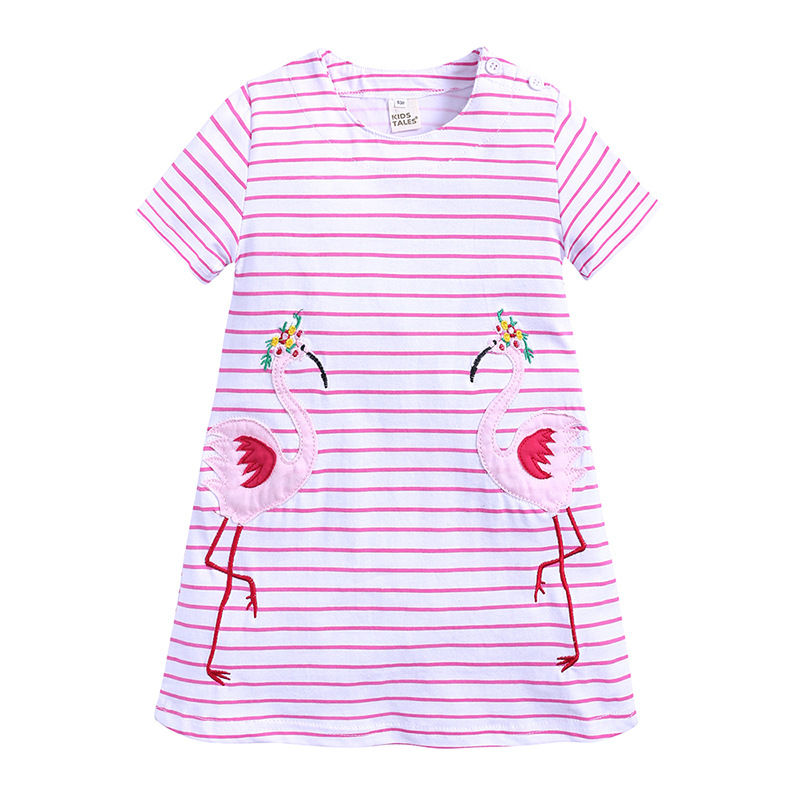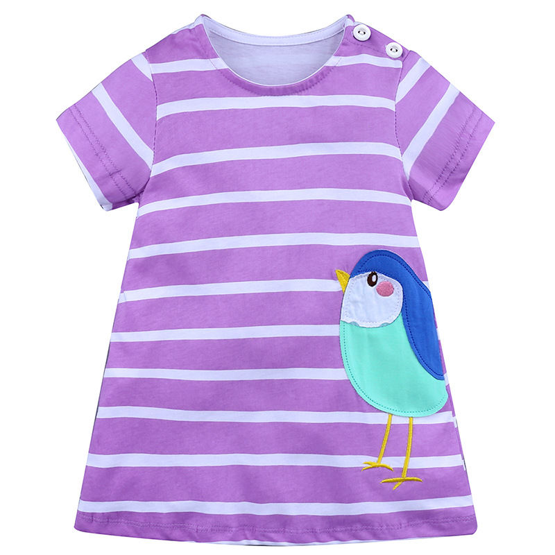 【款式】品牌童装 短袖女童连衣裙 针织纯棉童裙夏季卡通条纹长裙