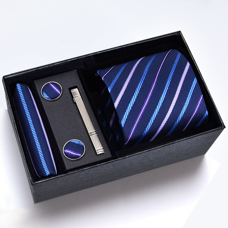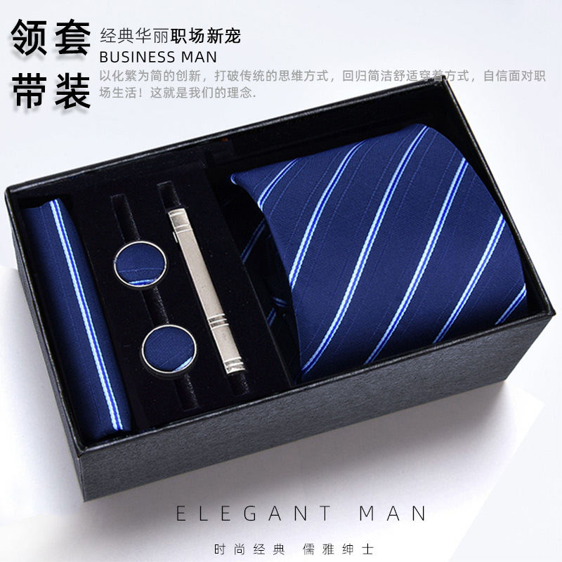 선물 상자] 남자 넥타이 5 세트 로고 공식 비즈니스 8cm 스트라이프 블랙 웨딩 신랑
