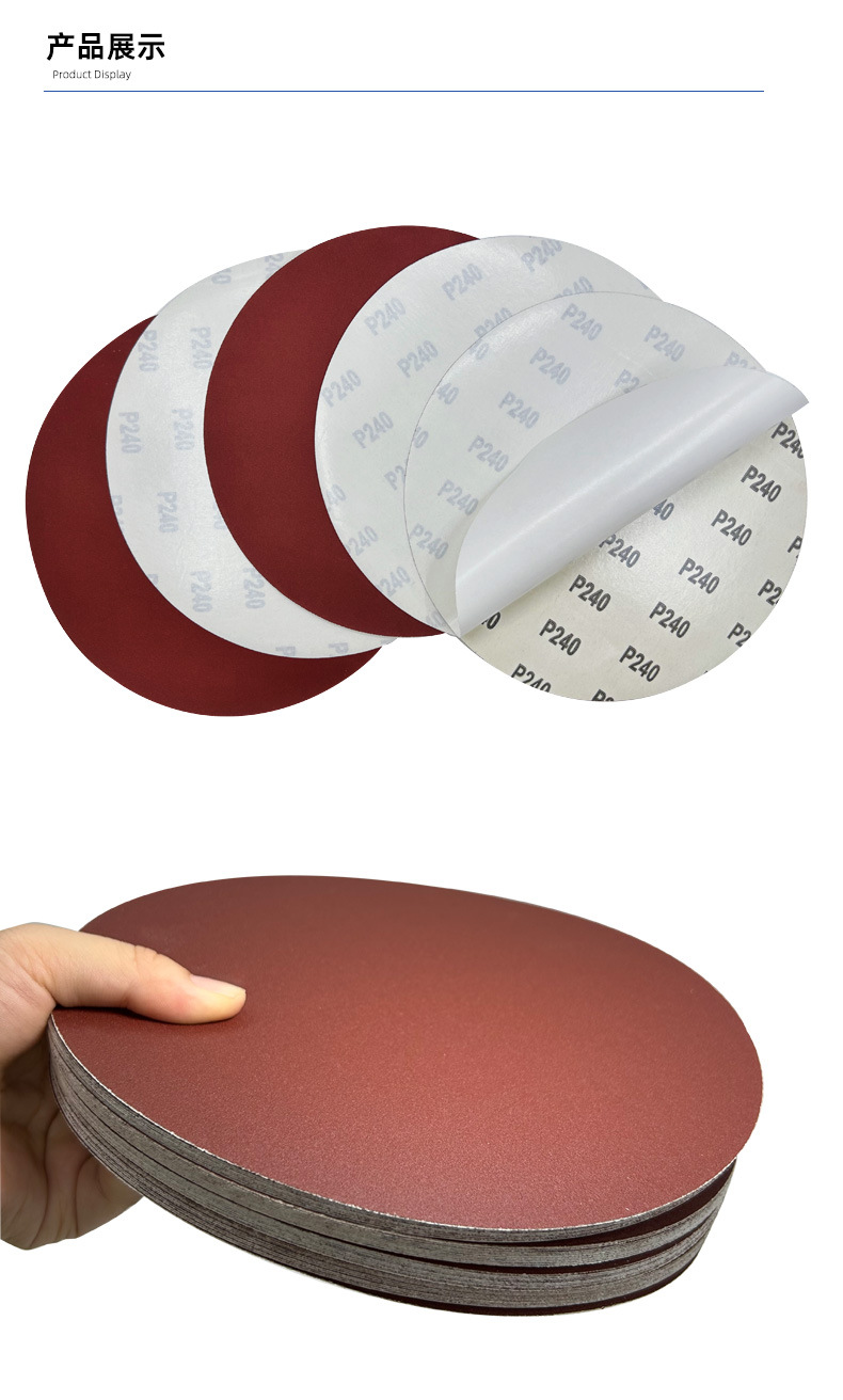 둥근 빨간 사포 접착 사포 10 인치 250mm 자체 접착 양면 접착 디스크 종이 기본 사포