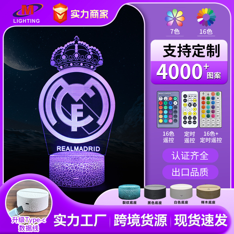 5 개의 주요 유럽 리그 축구 클럽 팀 로고 시리즈 3D 야간 조명 LED 비주얼 데스크 램프 전용 국경스토어 가기