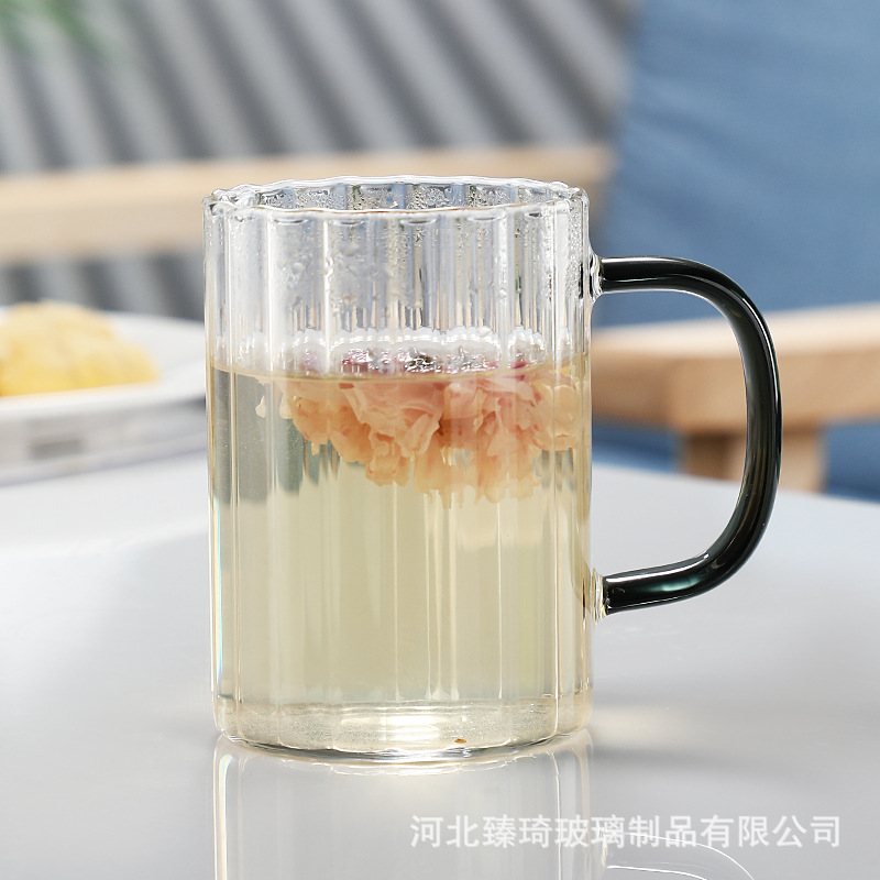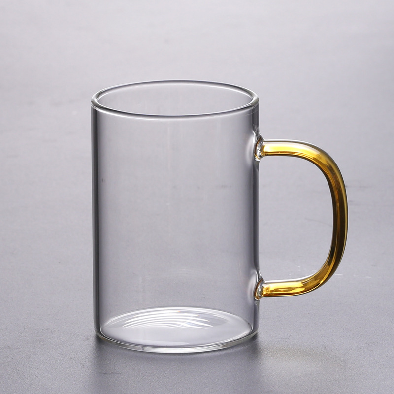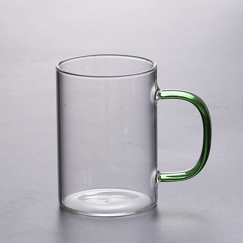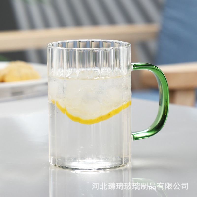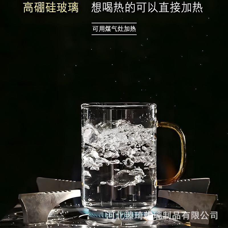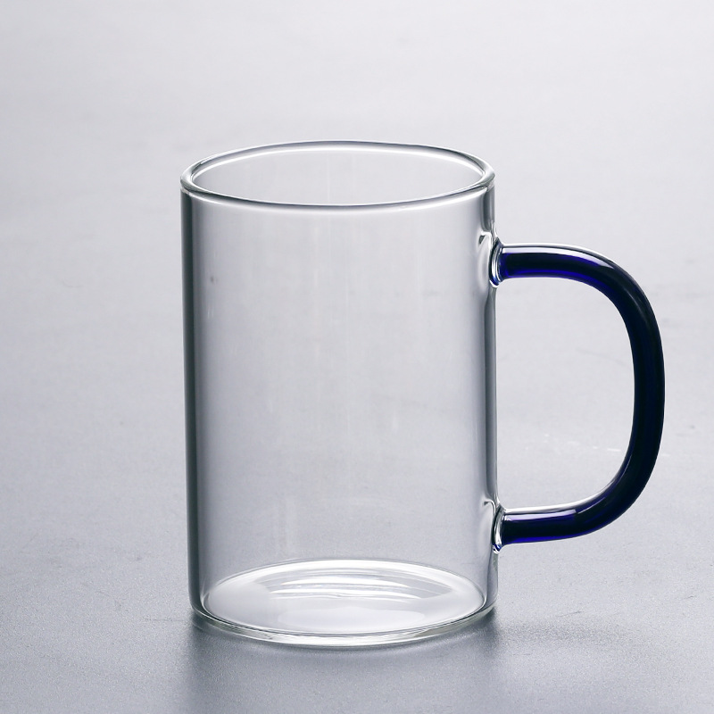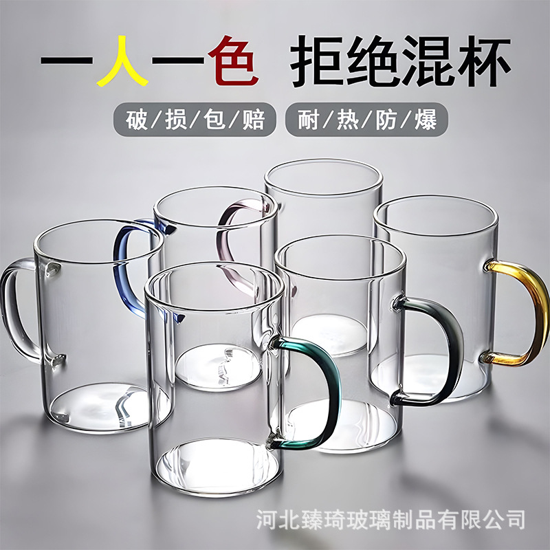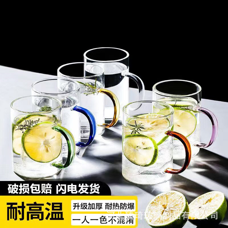 공장에서 제작한 두꺼운 유리컵, 고붕규산염 손잡이가 있는 물컵, 6가지 색상의 차컵, 내열성 일회용 공푸차컵스토어 가기