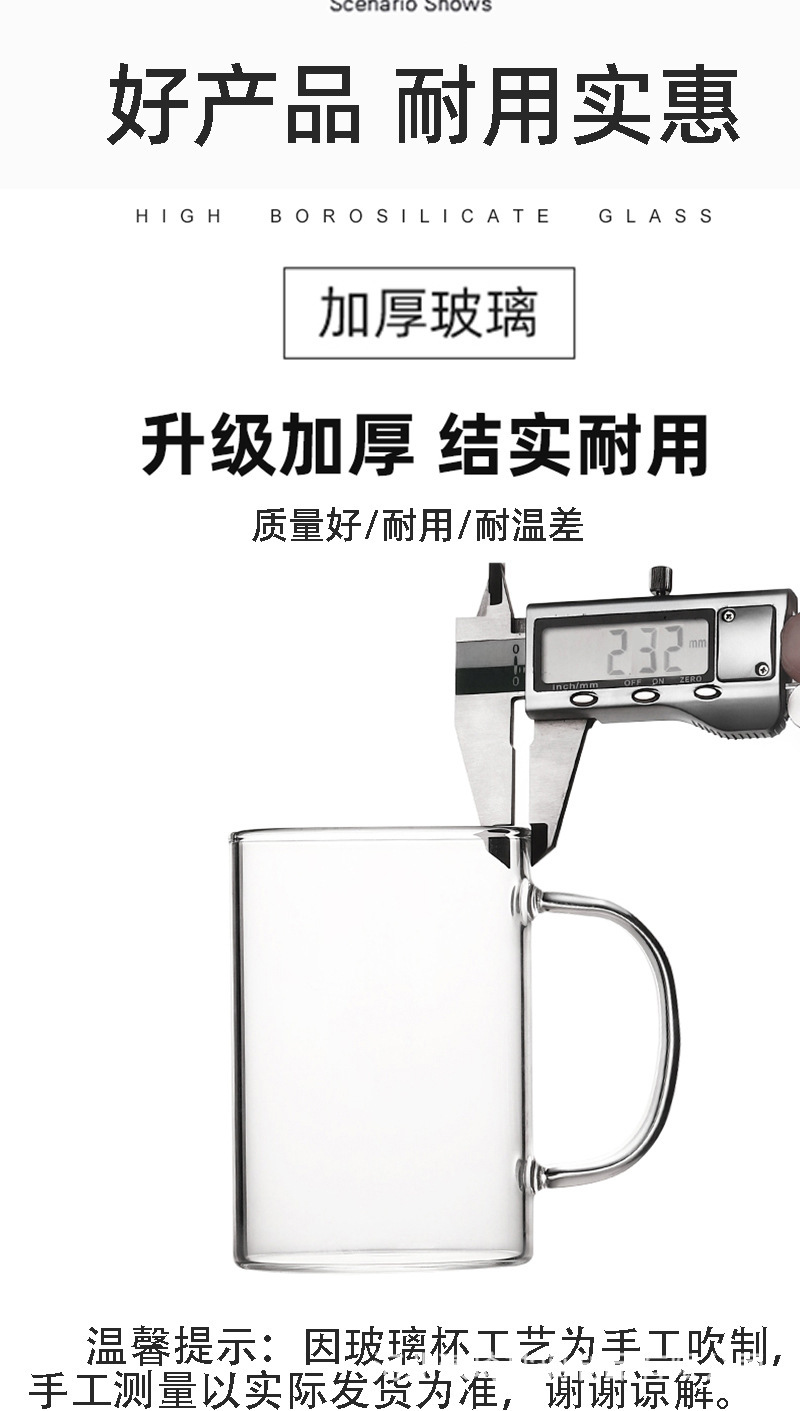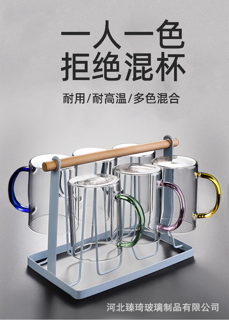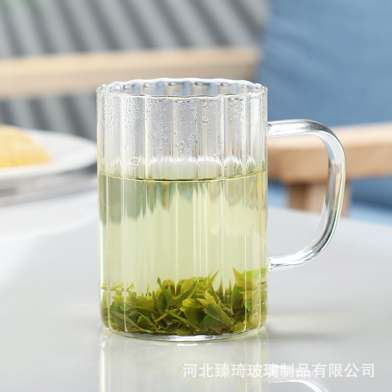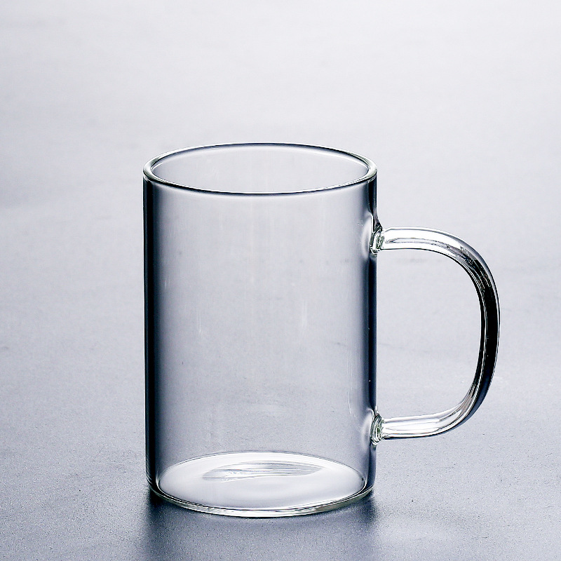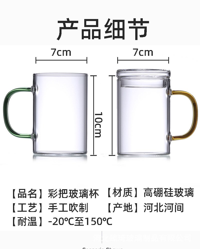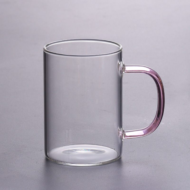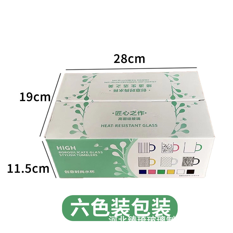 공장에서 제작한 두꺼운 유리컵, 고붕규산염 손잡이가 있는 물컵, 6가지 색상의 차컵, 내열성 일회용 공푸차컵스토어 가기