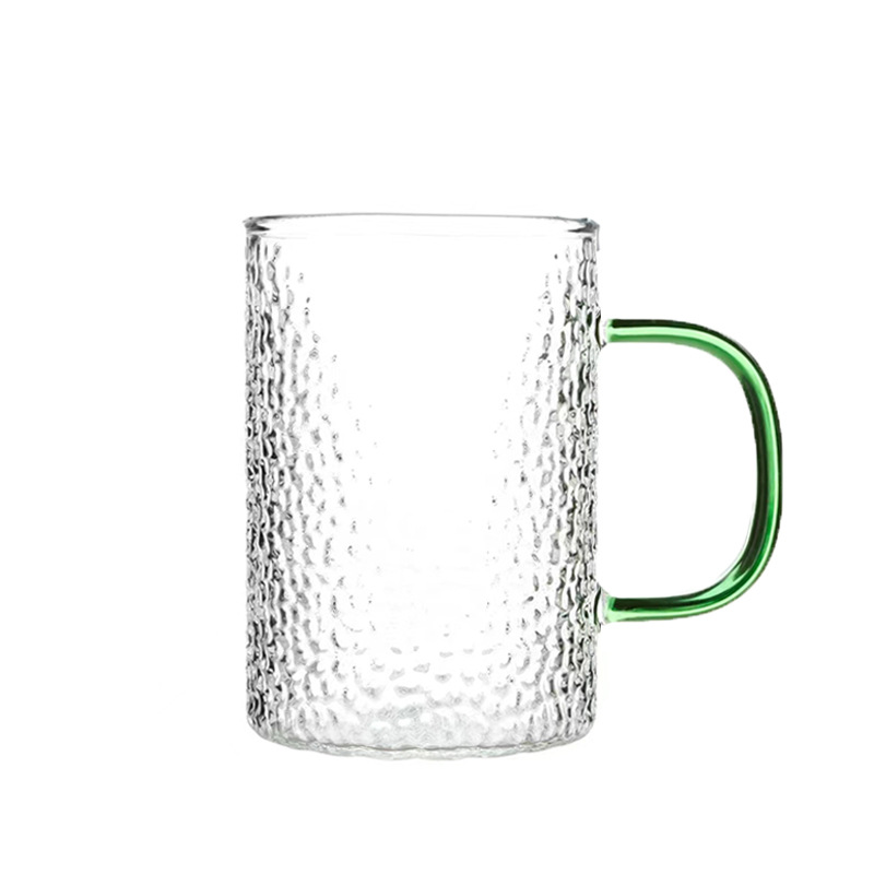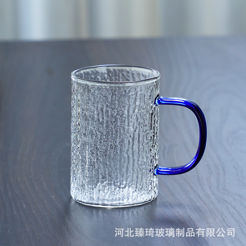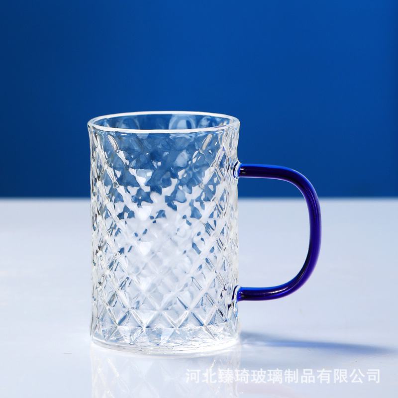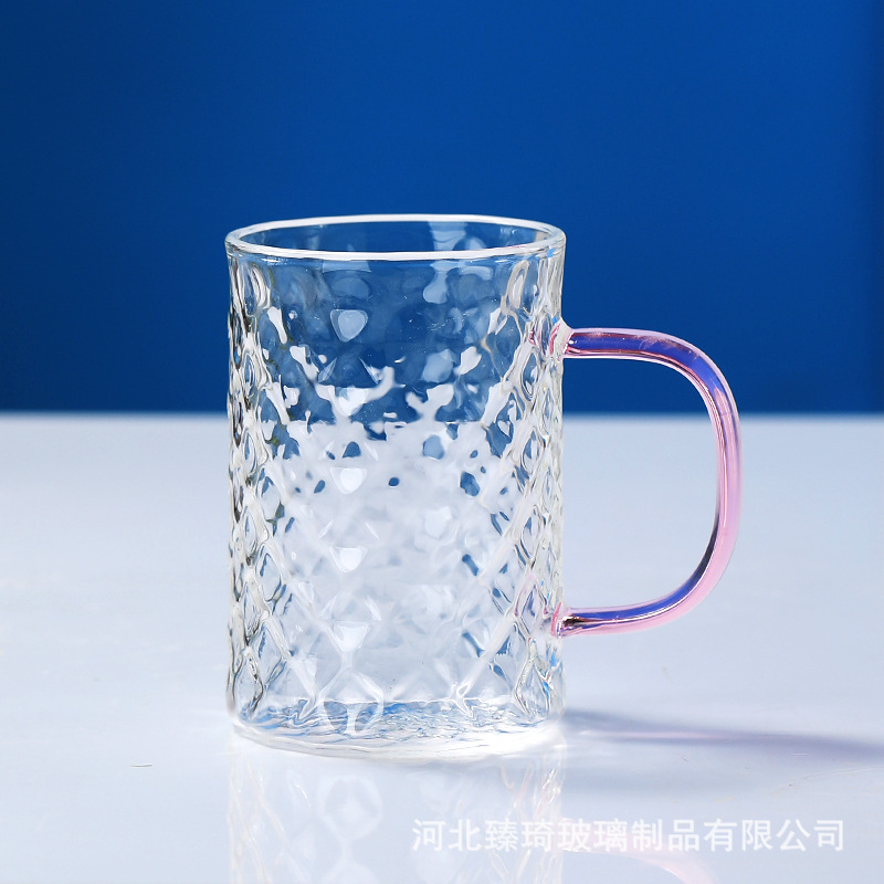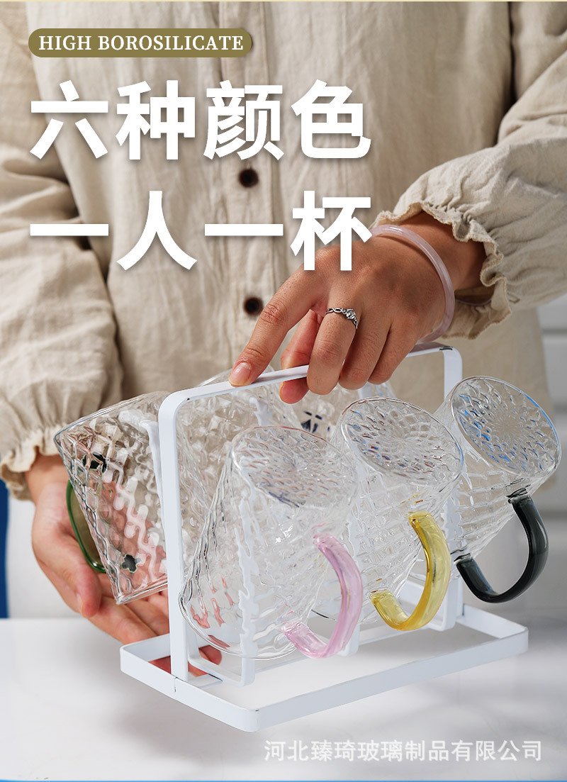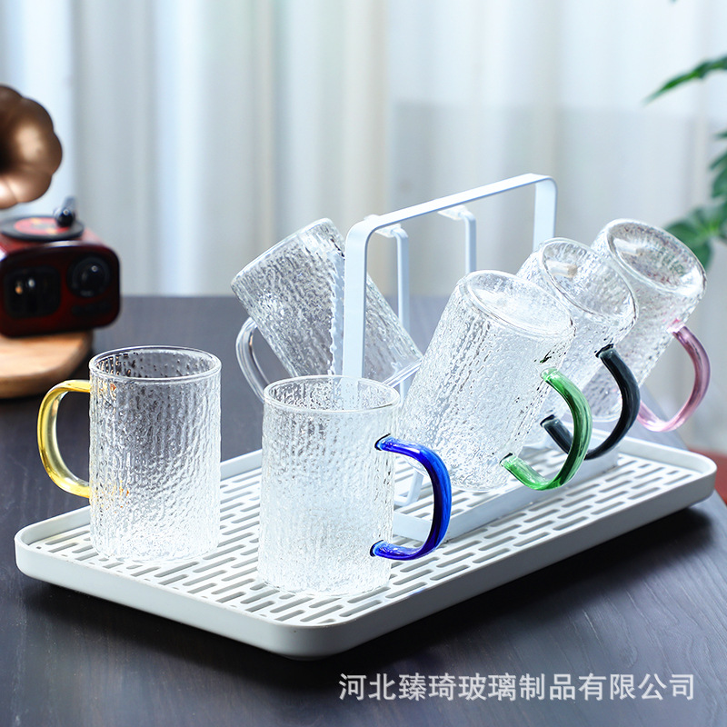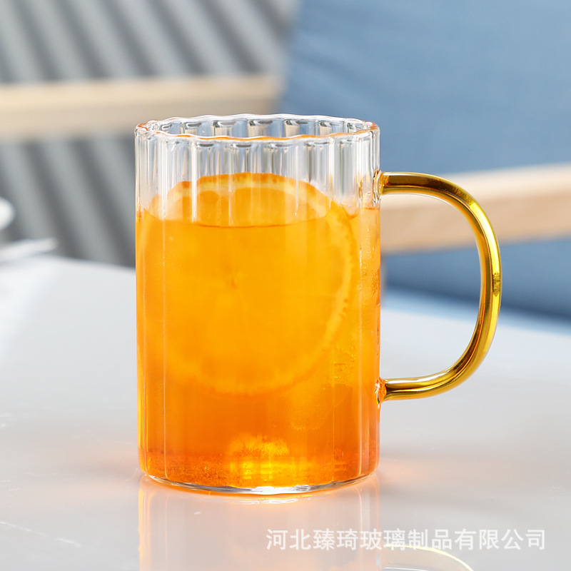 공장에서 제작한 두꺼운 유리컵, 고붕규산염 손잡이가 있는 물컵, 6가지 색상의 차컵, 내열성 일회용 공푸차컵스토어 가기