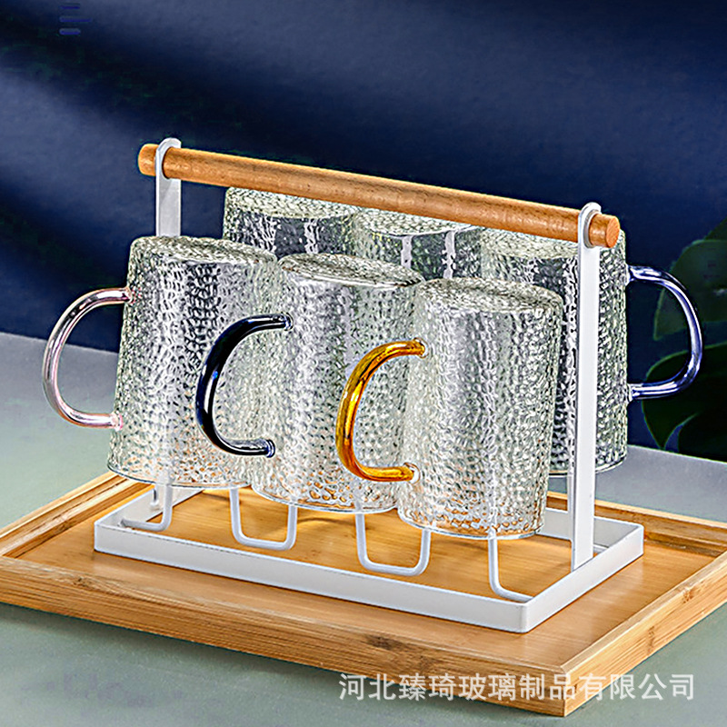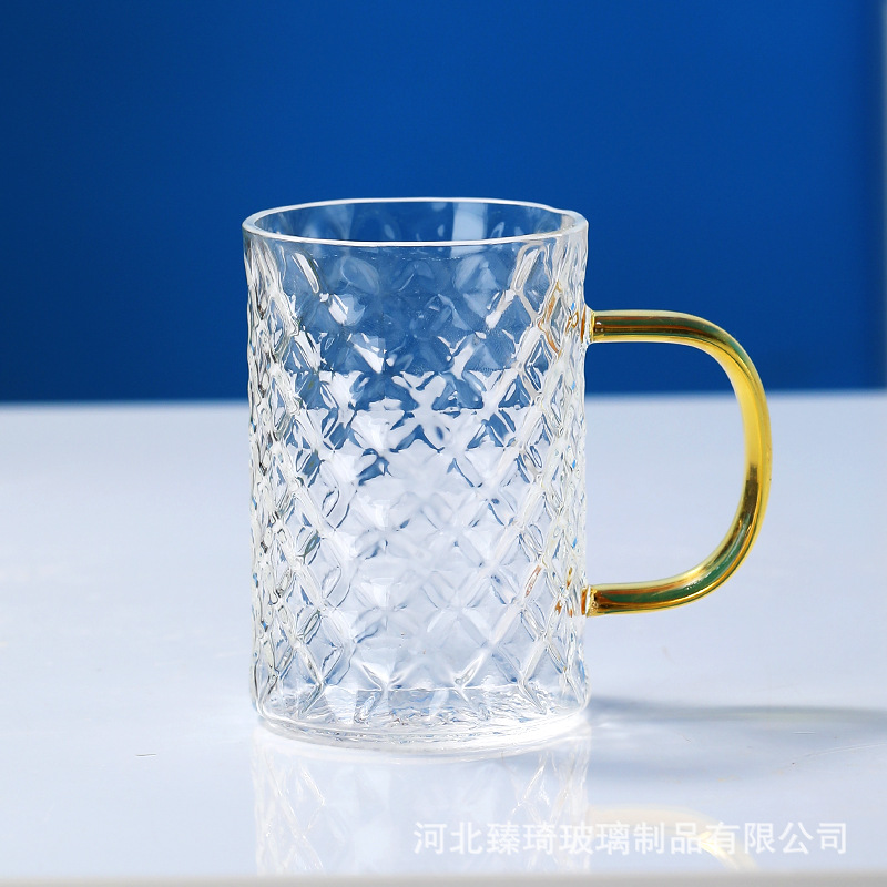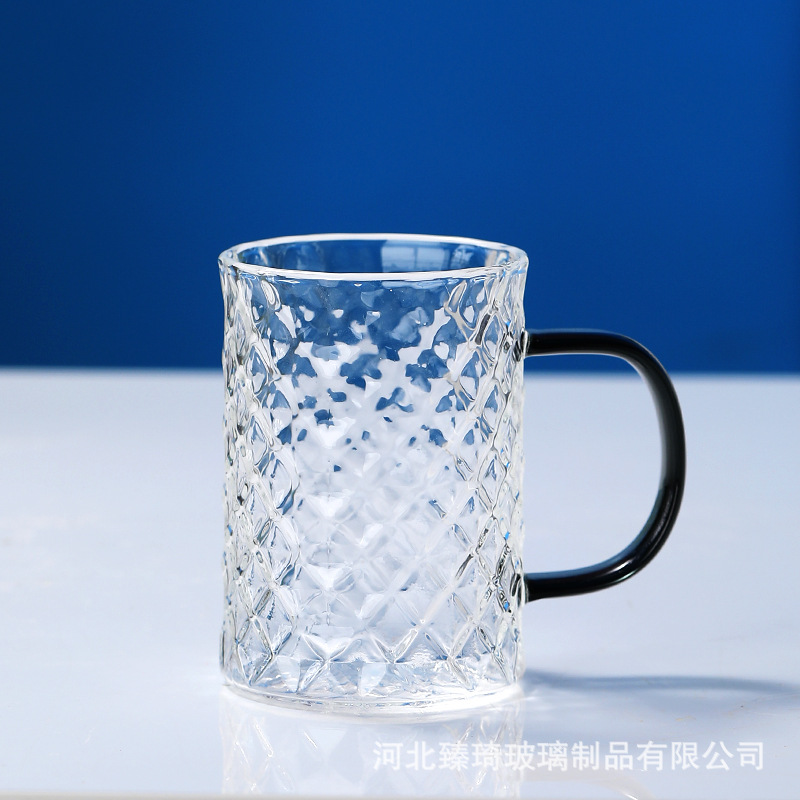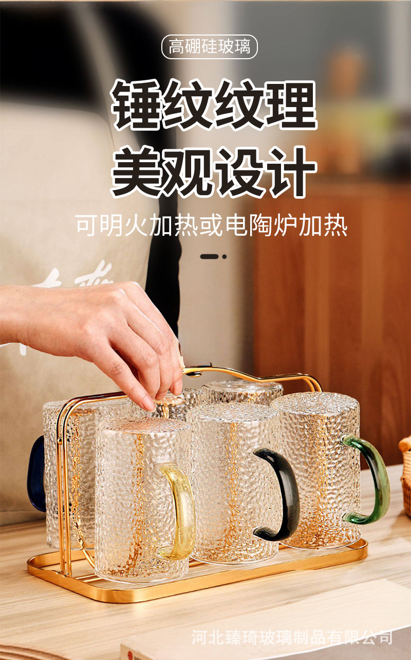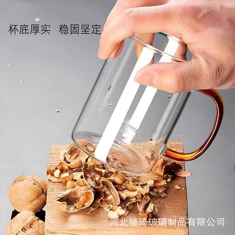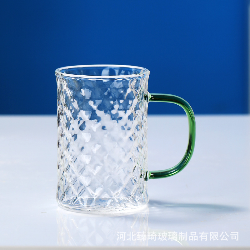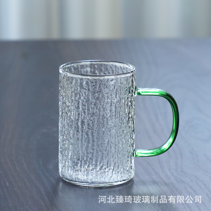 공장에서 제작한 두꺼운 유리컵, 고붕규산염 손잡이가 있는 물컵, 6가지 색상의 차컵, 내열성 일회용 공푸차컵스토어 가기