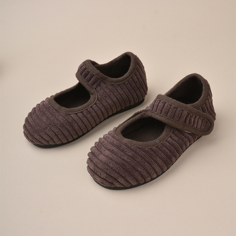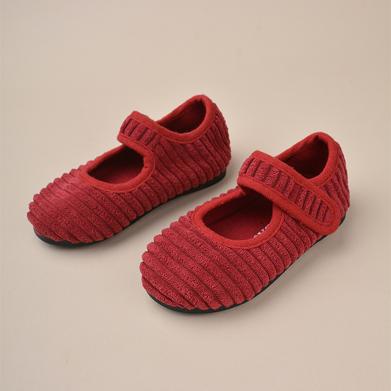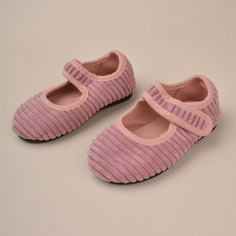 봄과 가을 반점 코듀로이 어린이 신발 한국식 벨크로 소녀 스퀘어 입 신발 유치원 실내 베이비 보드 신발
