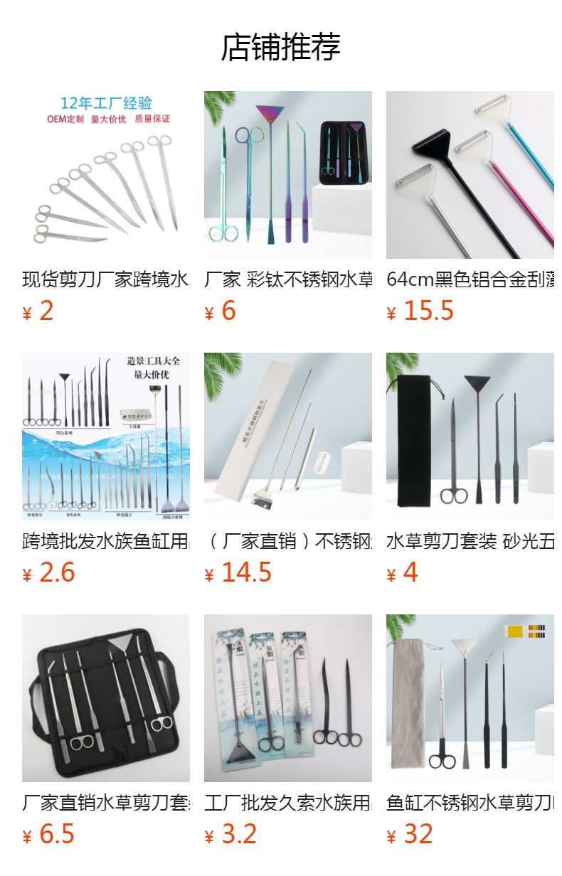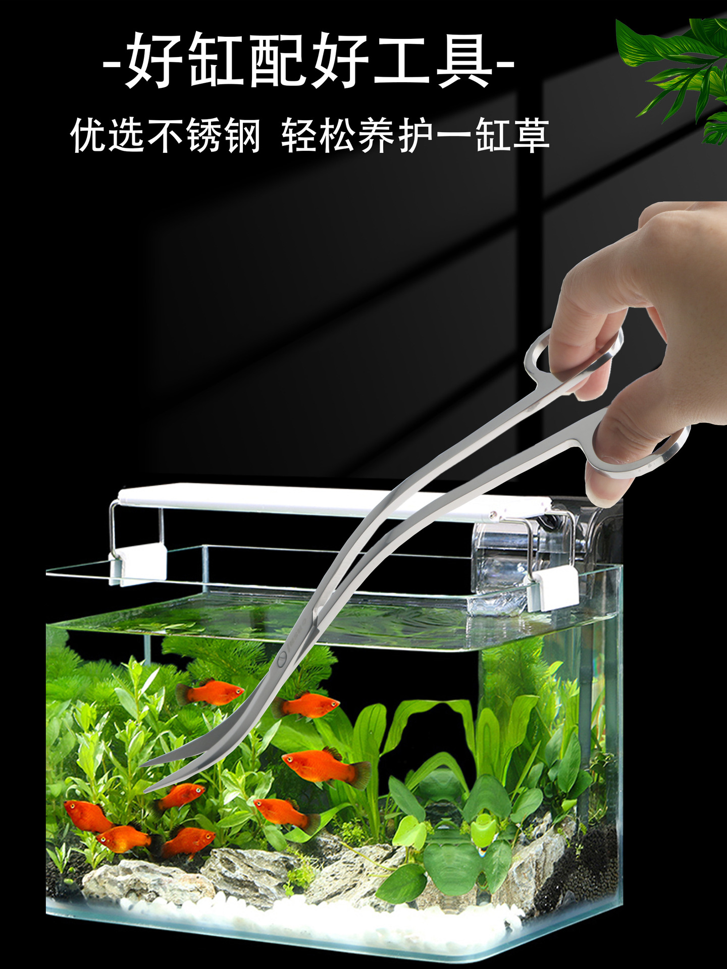 국경 간 도매 수족관 어항 공급 스테인레스 스틸 가위 수생 잔디 도구 긁는 조류 칼 확장 핀셋 수생 잔디 가위스토어 가기