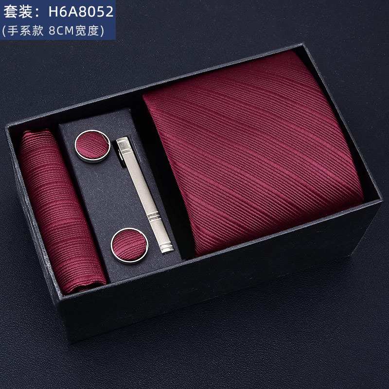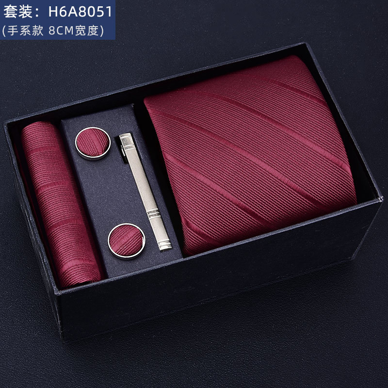 선물 상자] 남자의 넥타이 사각 스카프 커프스 단추 넥타이 클립 5 세트 로고 원피스 비즈니스 블루 줄무늬
