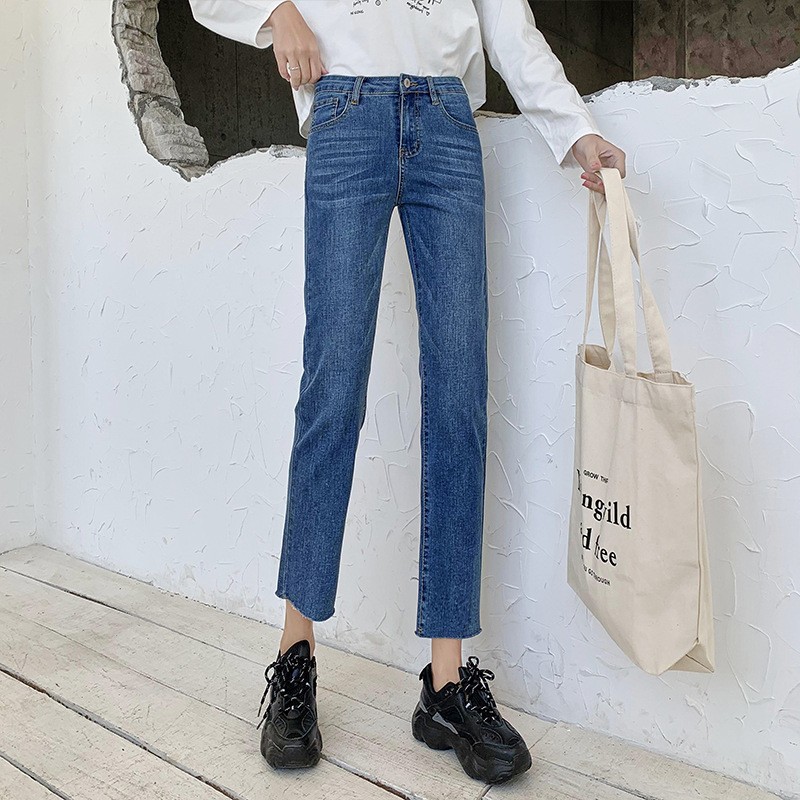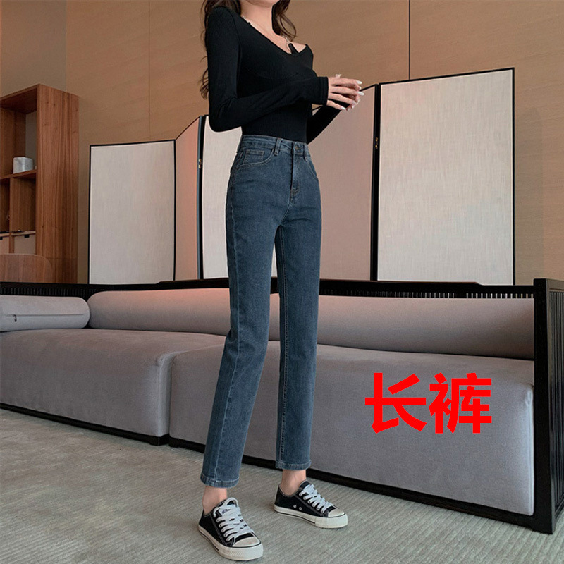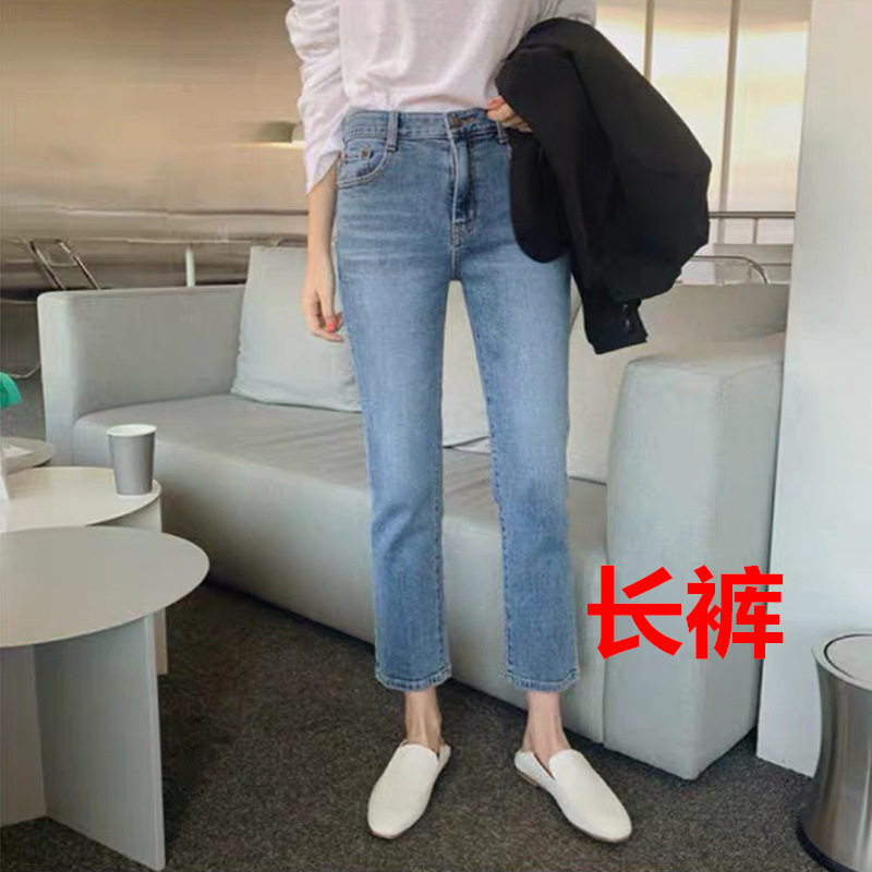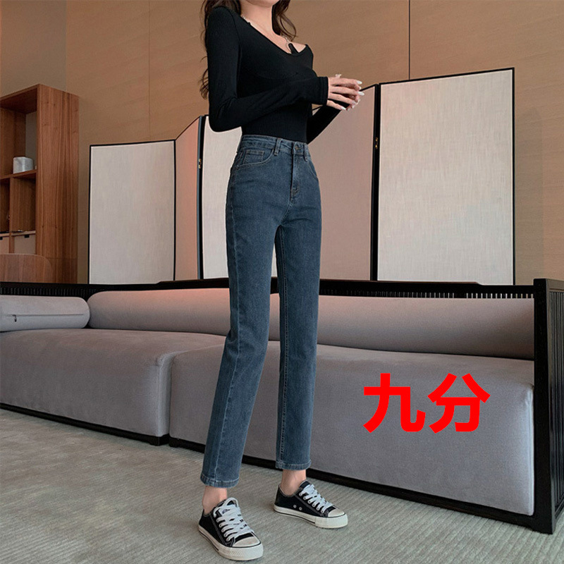 짧은 스트레이트 래그 청바지 여성 2024 봄과 가을 새로운 한국 스타일 높은 허리 스트레치 슬림 핏 8 점 연기 튜브 바지스토어 가기
