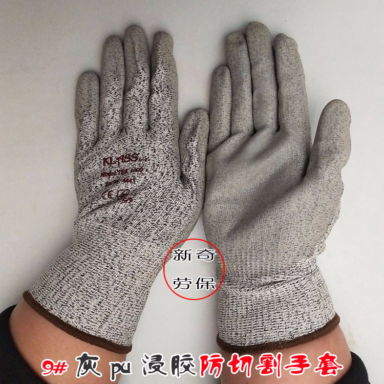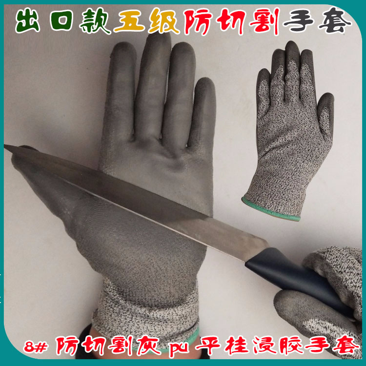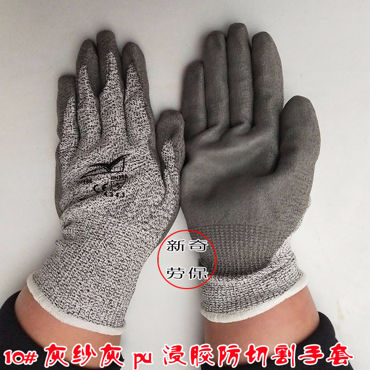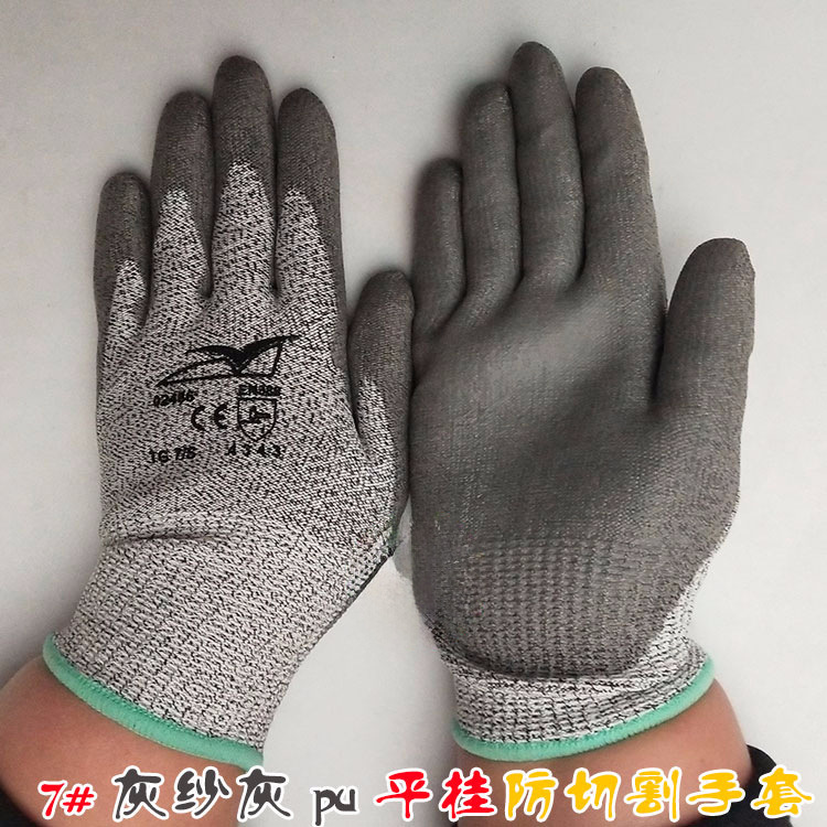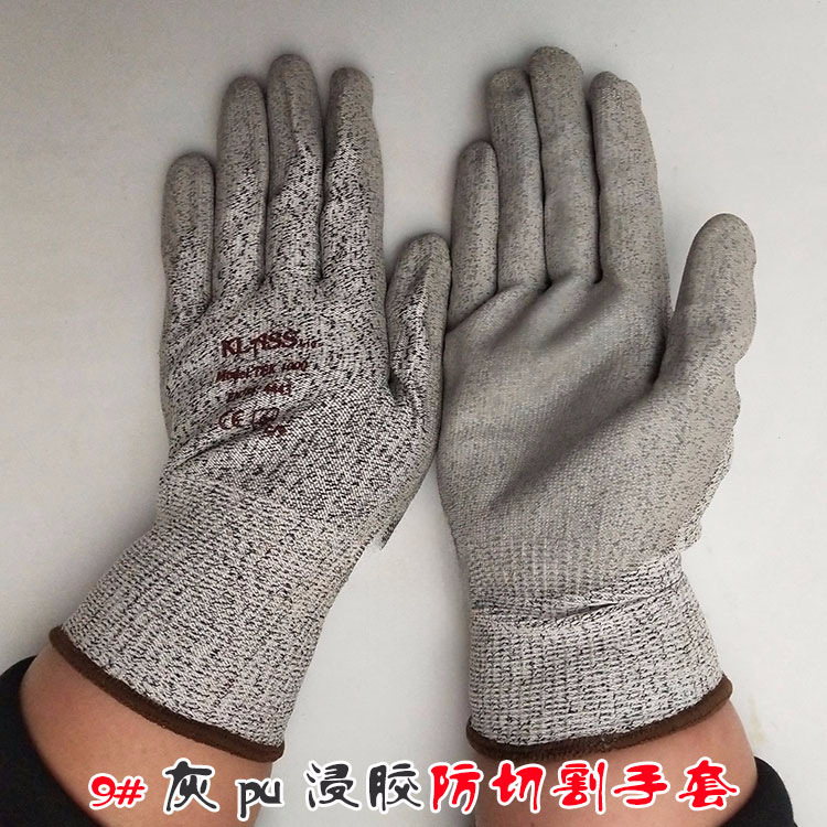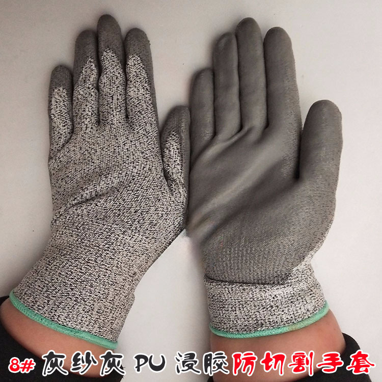 【商品名称】:灰纱灰pu平挂浸胶防切割手套