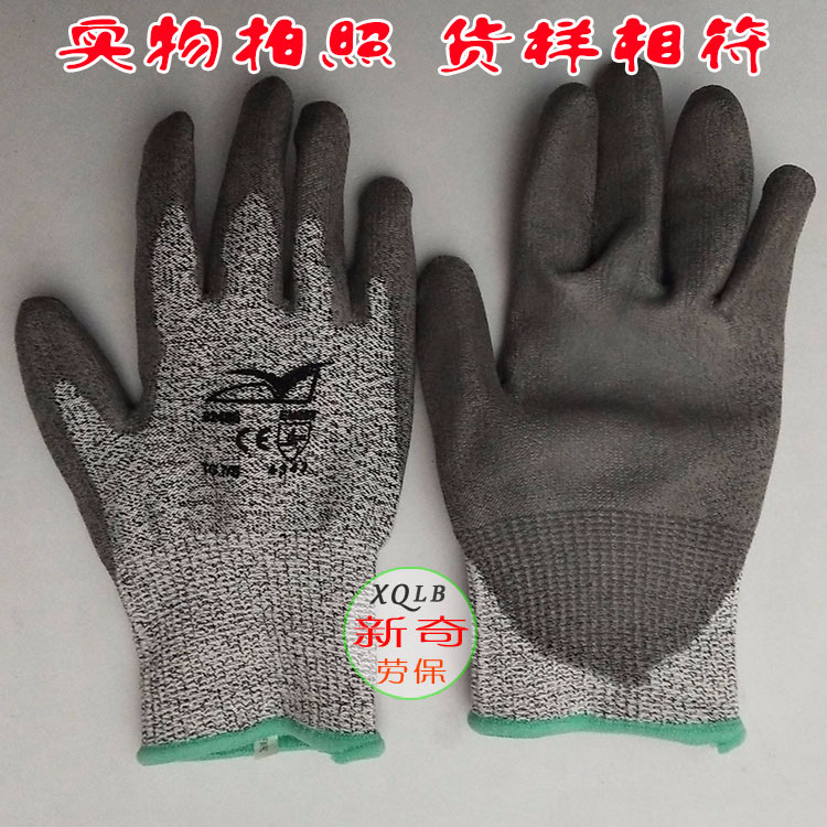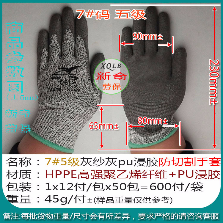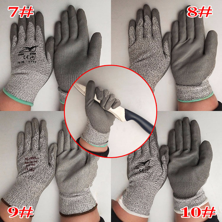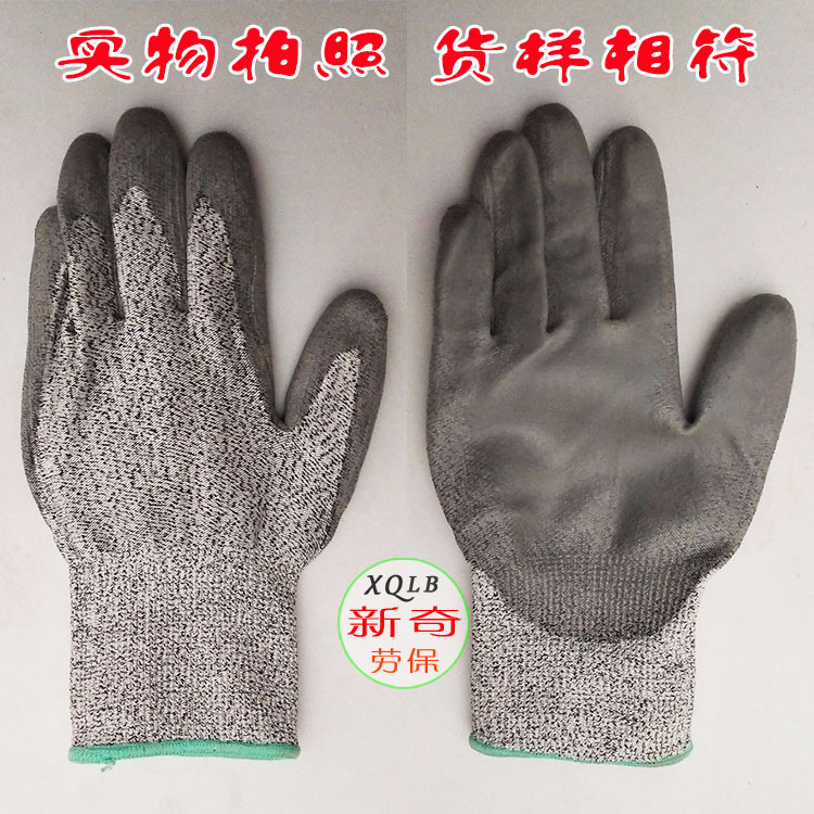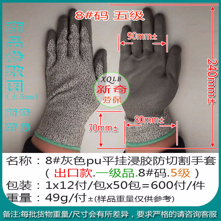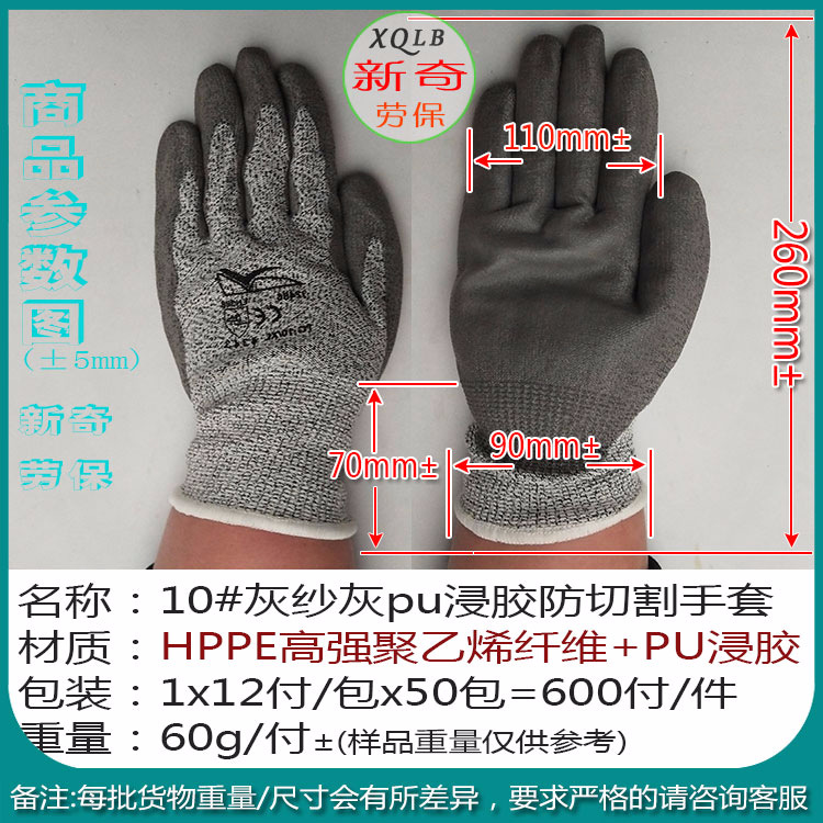 【商品名称】:灰纱灰pu平挂浸胶防切割手套