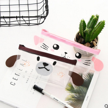 한국 문구 새로운 작은 동물 표현 투명 PVC 필통 신학생 필통 특수 필통 도매