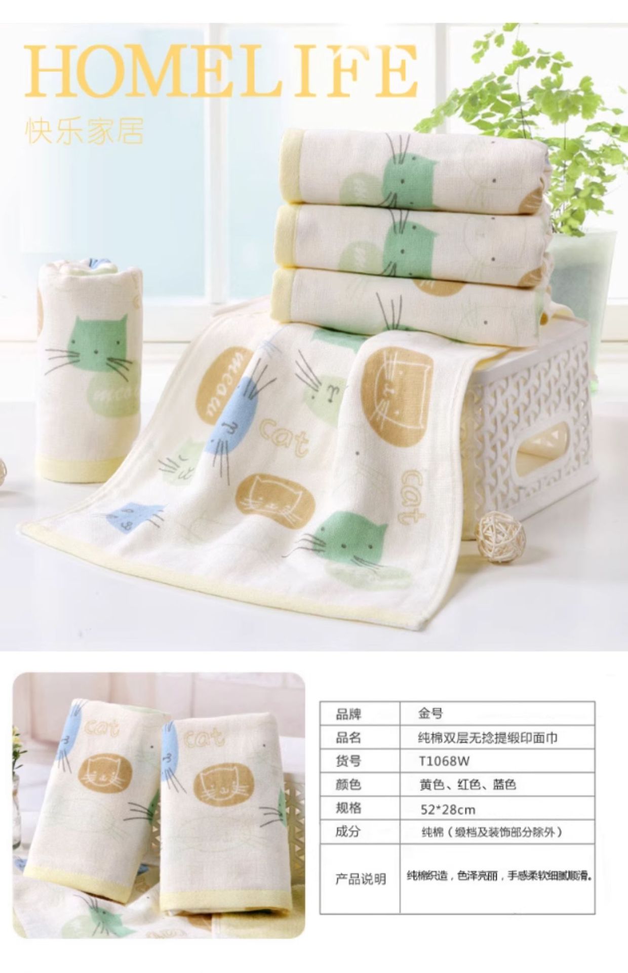 금화 이중 거즈 어린이 수건 꼬인 부드러운 흡수 만화 패턴 T1067W/T1068W
