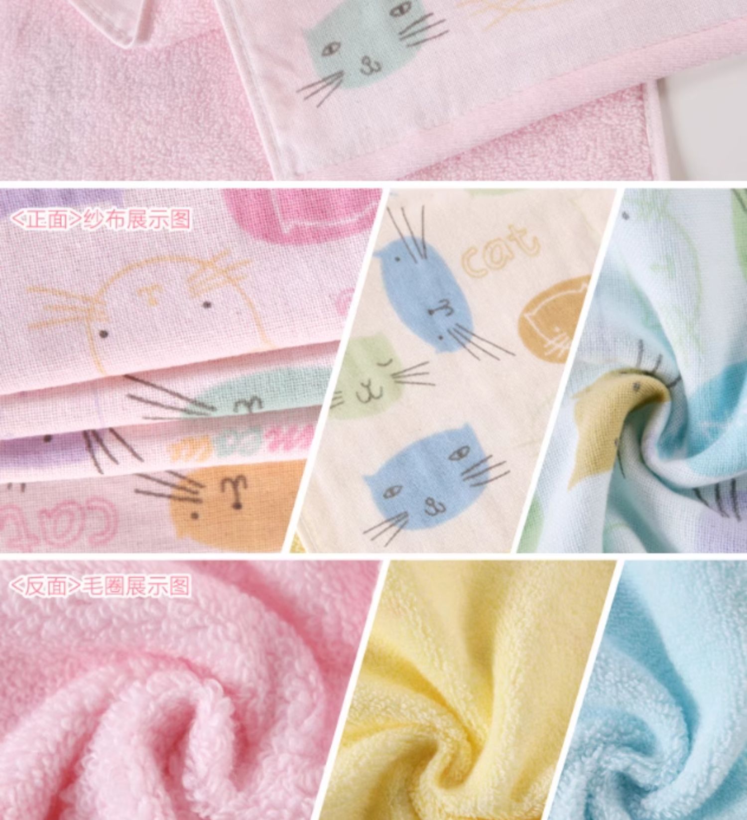 금화 이중 거즈 어린이 수건 꼬인 부드러운 흡수 만화 패턴 T1067W/T1068W스토어 가기