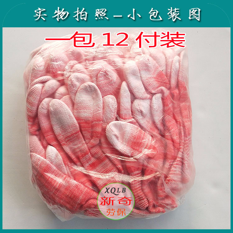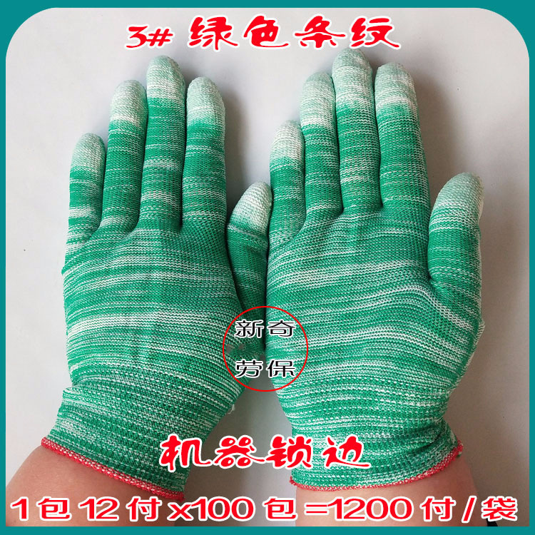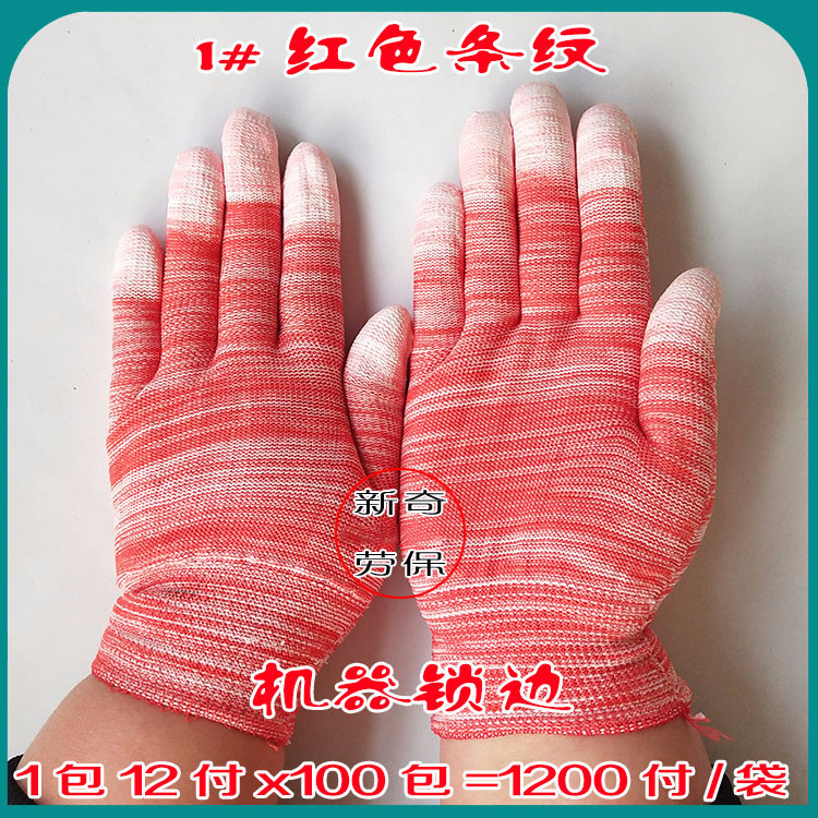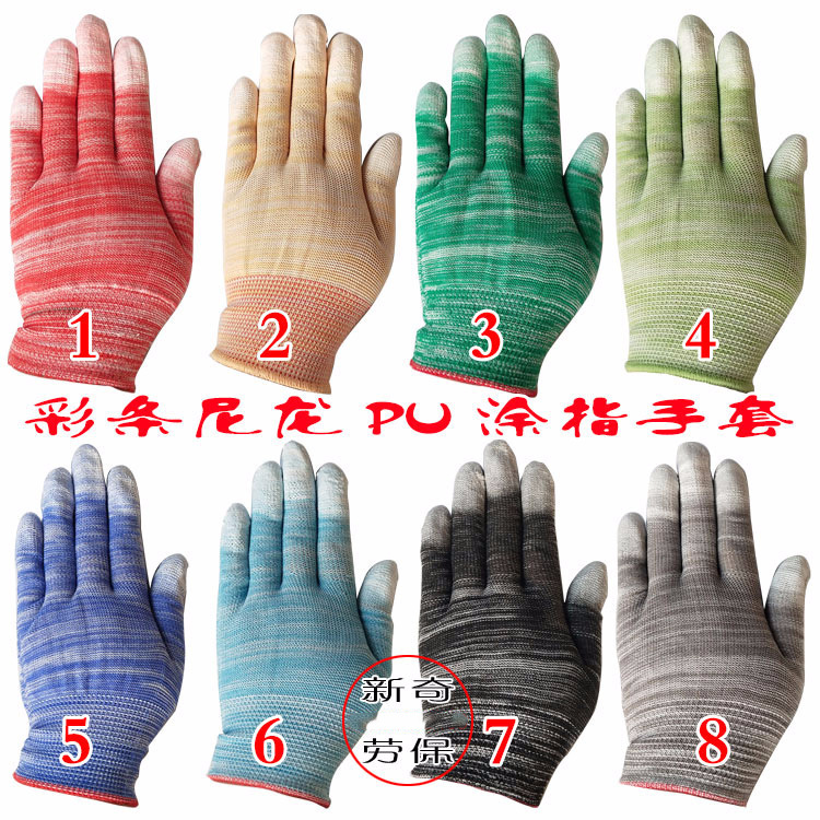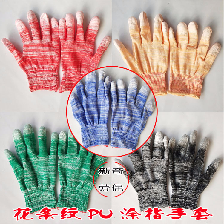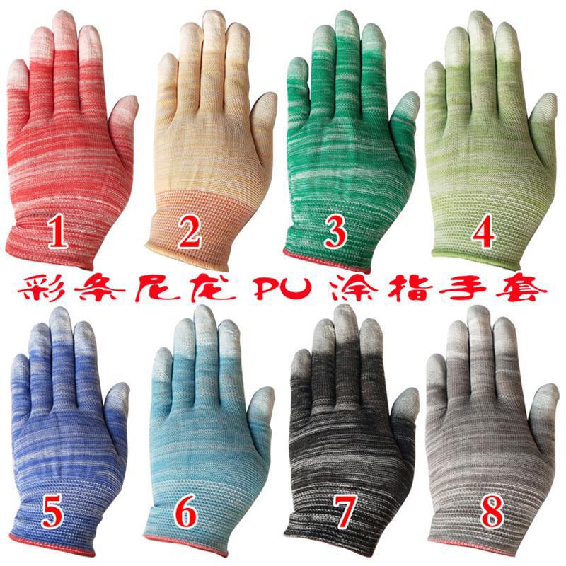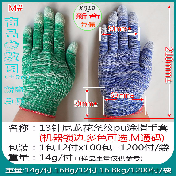 【商品名称】:13针尼龙彩条纹pu涂指手套