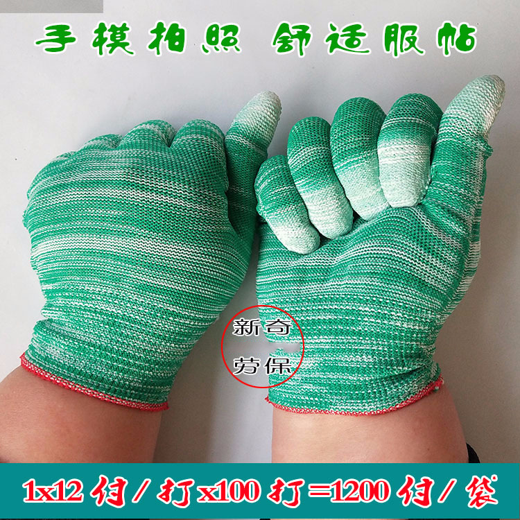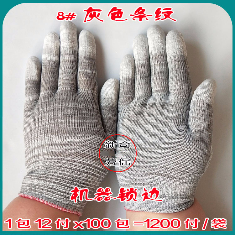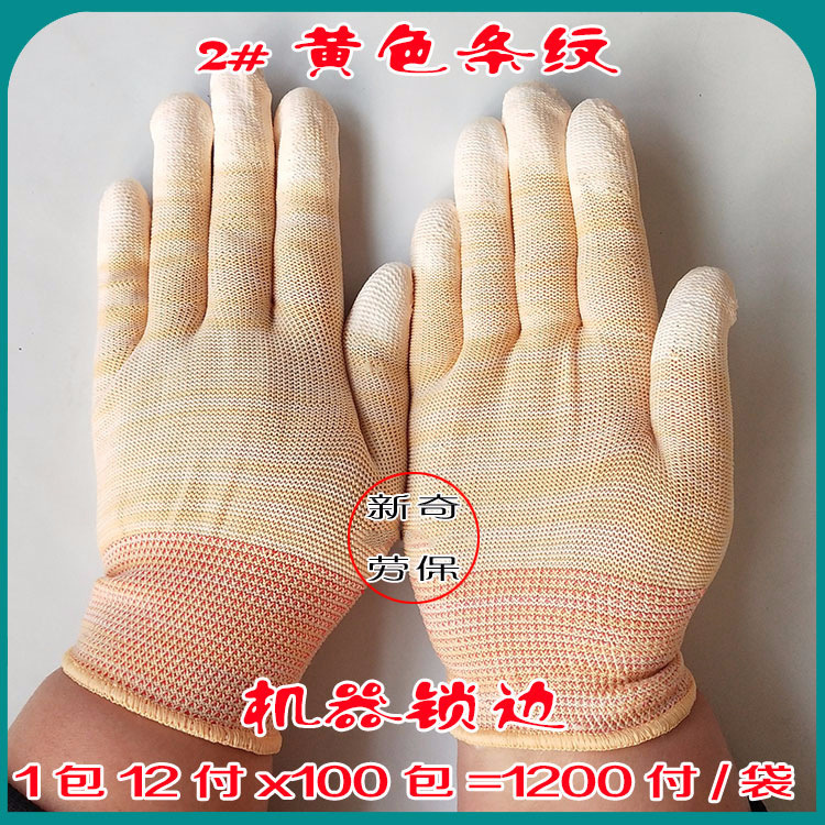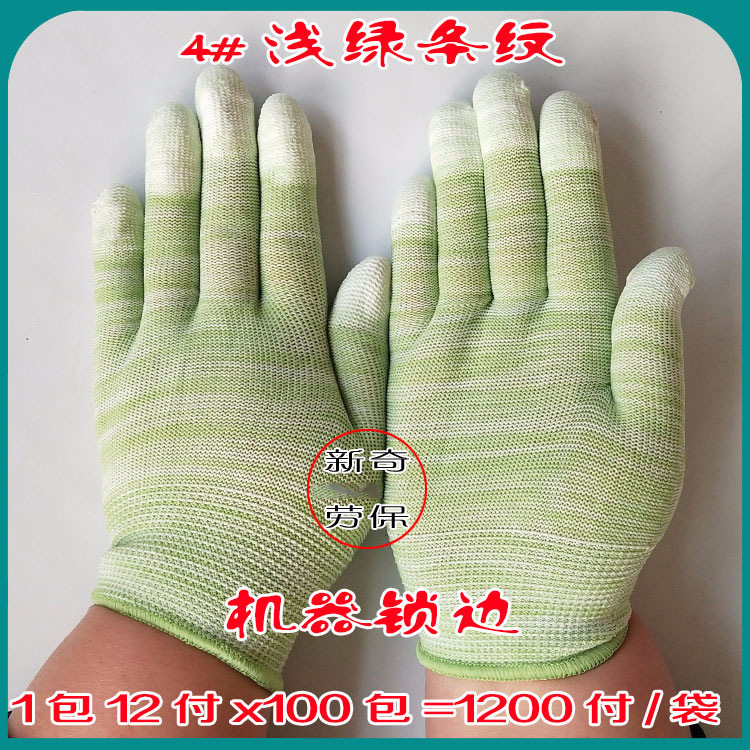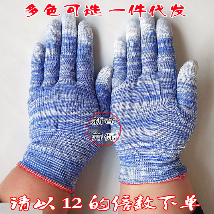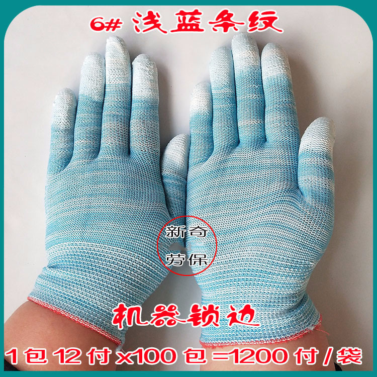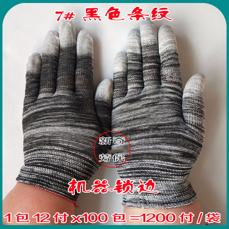 【商品名称】:13针尼龙彩条纹pu涂指手套