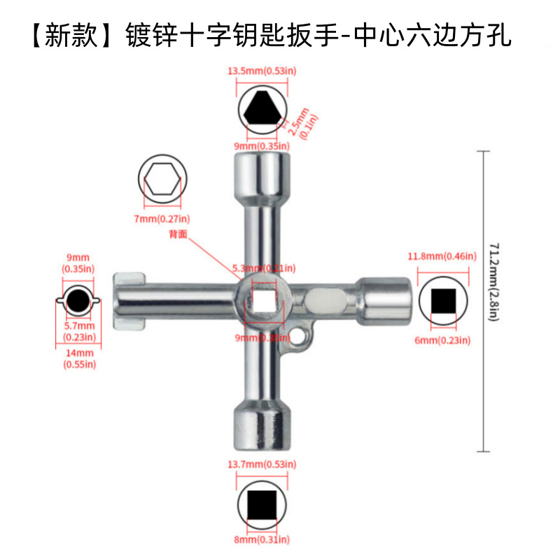 • 【신제품】 아연 도금 십자 렌치 - 센터 육각 사각 구멍