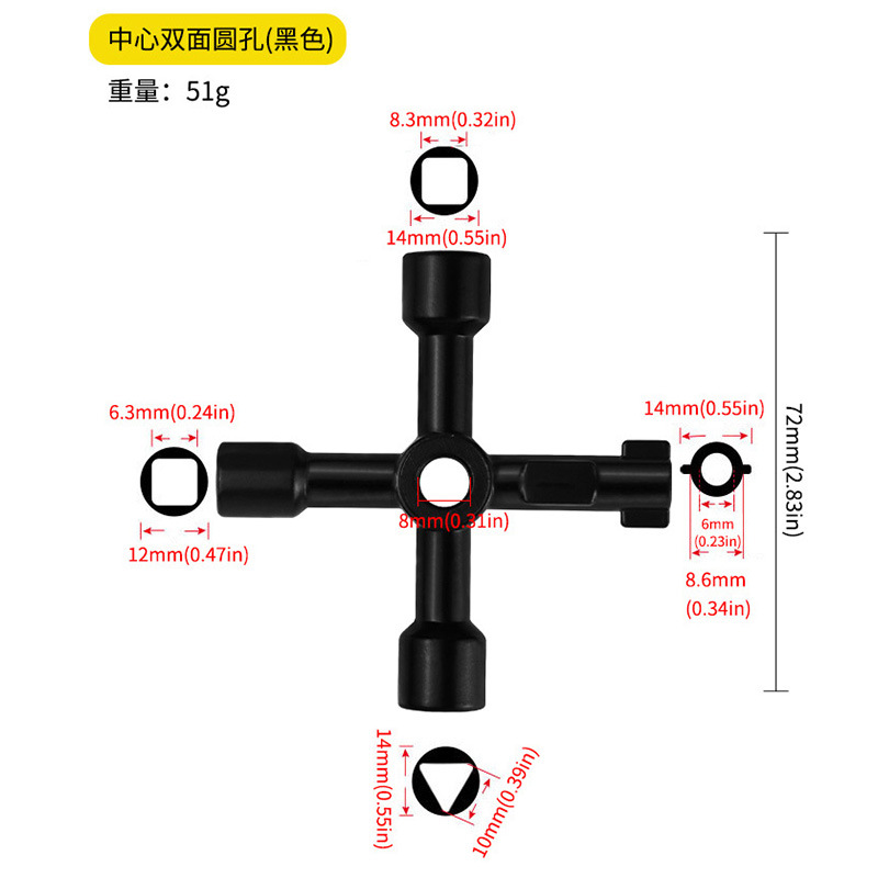 전기 제어 캐비닛 자동차 엘리베이터 크로스 키 렌치 수량계 밸브 키 내부 삼각형 렌치 다목적 공구