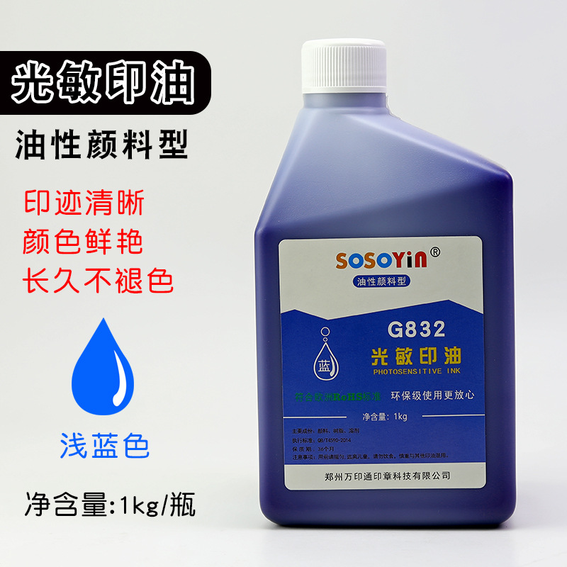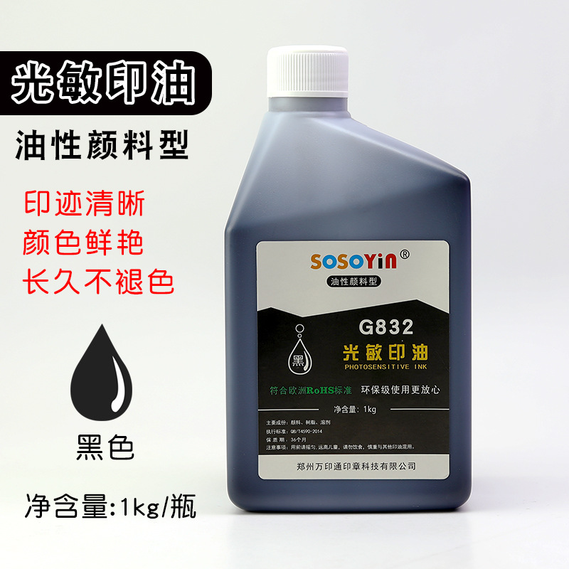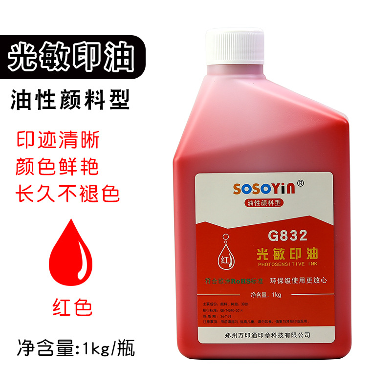 色泽亮丽,色密度高、质量上乘,适用于各种光敏印章,印到纸上印迹清晰,长久不变色不易褪色!光敏印油不宜沉淀,印鉴清晰均匀,不洇纸,无异味绿色环保。用于制作光敏印章