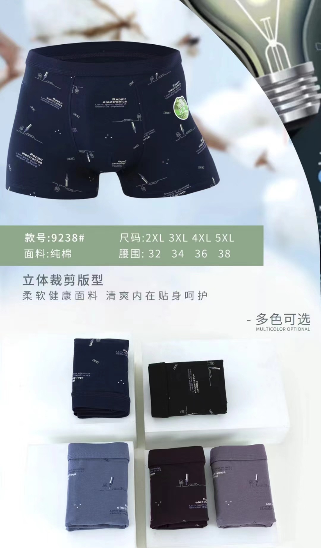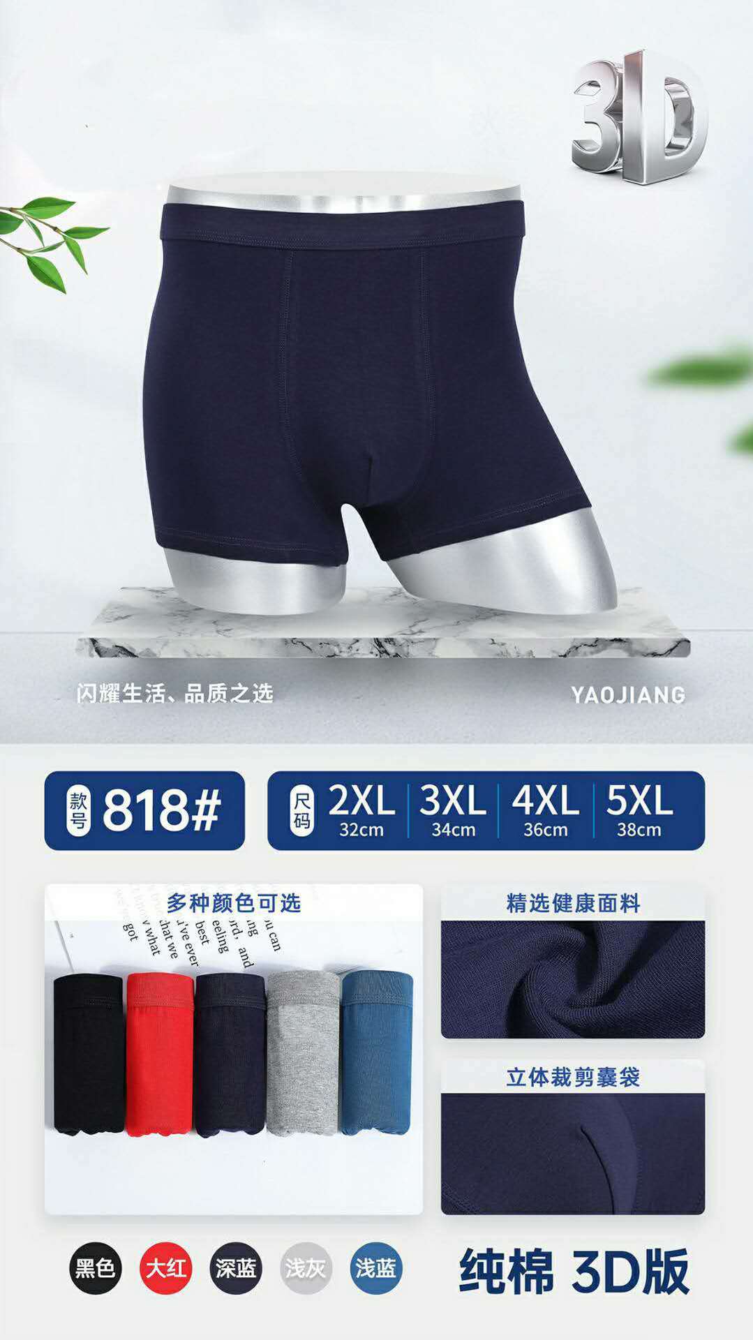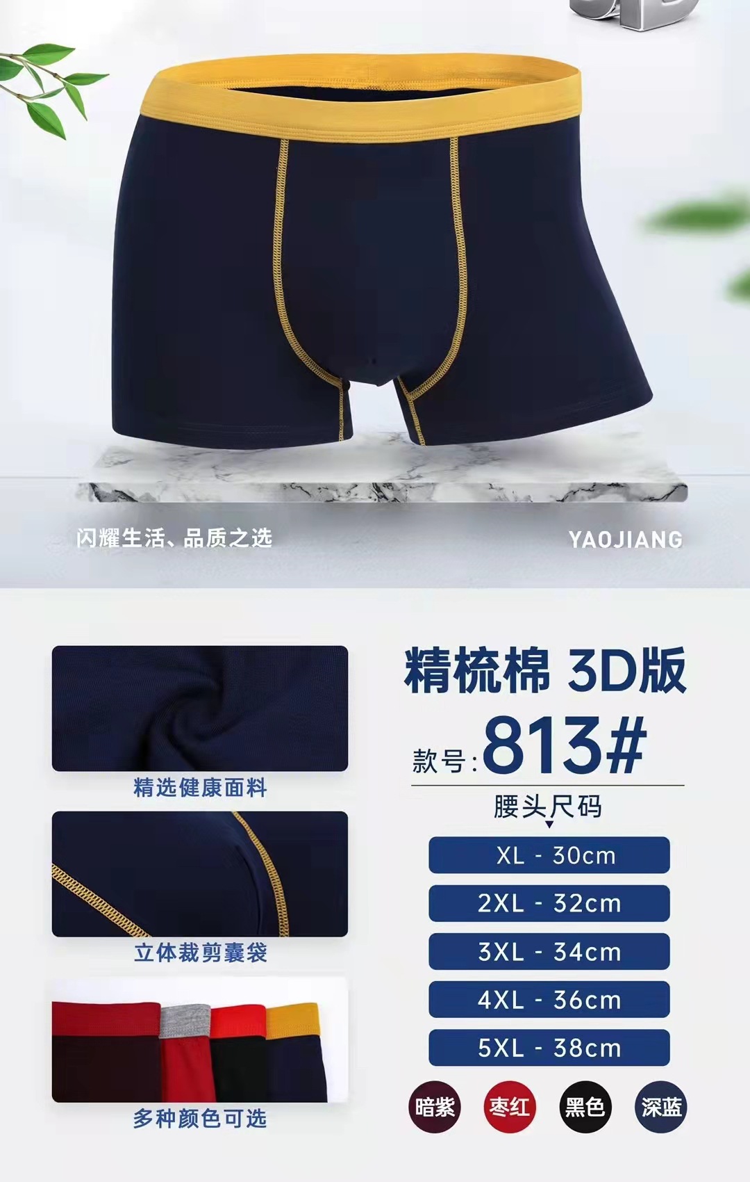 중간 허리 95% 순면 남성용 사각팬티 스판덱스 남성복 단색 전자상거래 전용 순면 가랑이스토어 가기