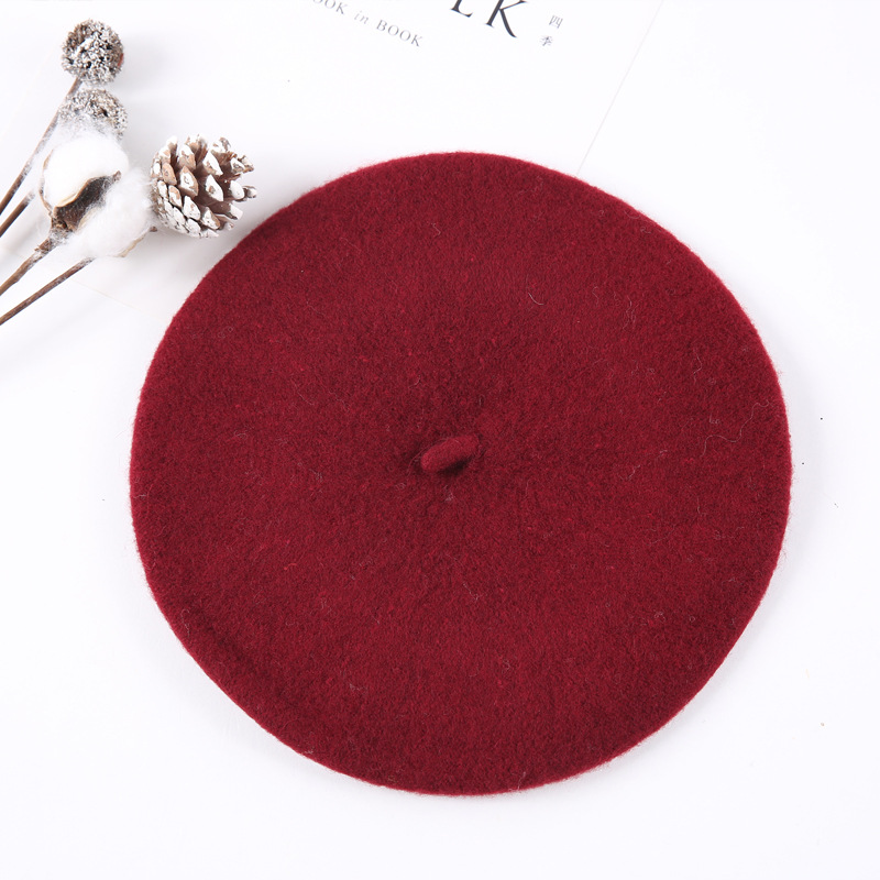 일본과 한국 스타일의 어린이 모자 단색 양모 모직 화가 모자 소녀 모직 소녀 베레모스토어 가기