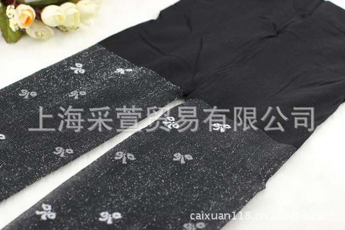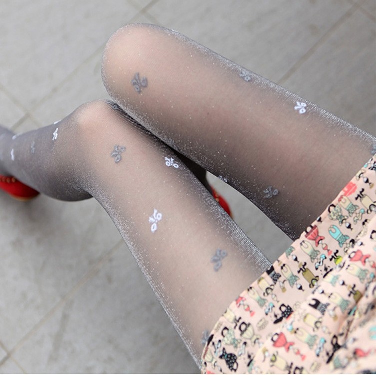 不易勾丝薄款银葱蝴蝶结打底丝袜Y-13-02