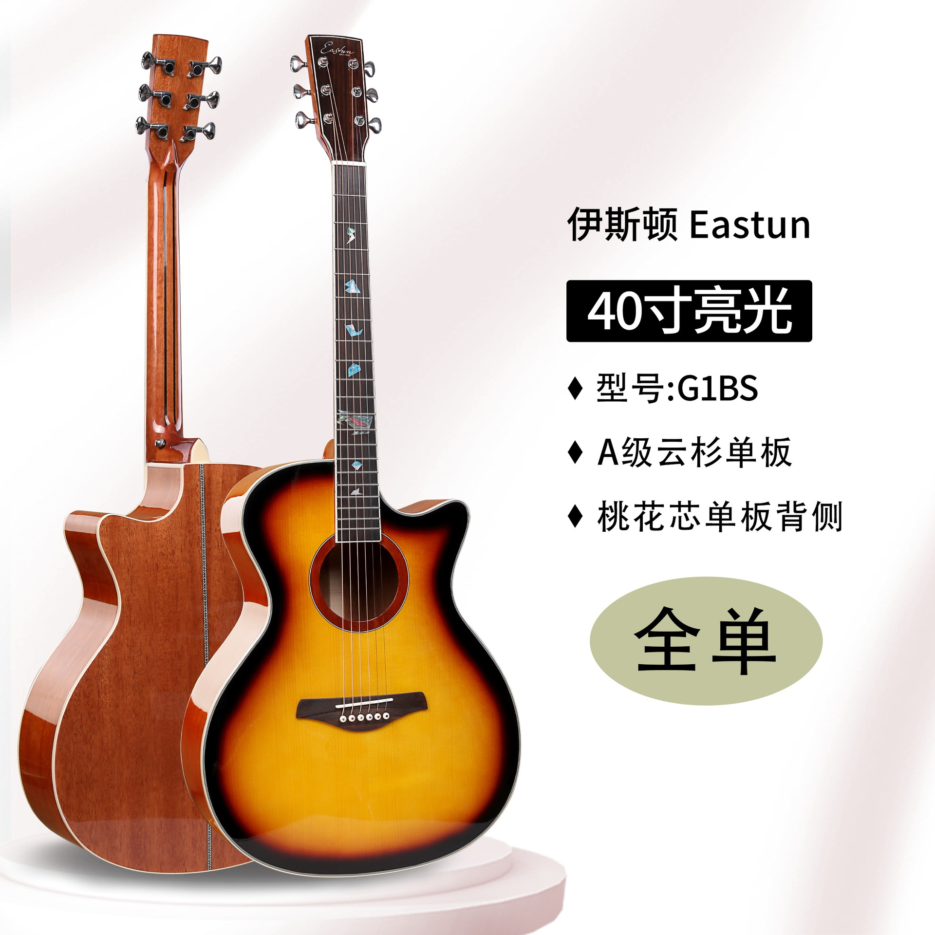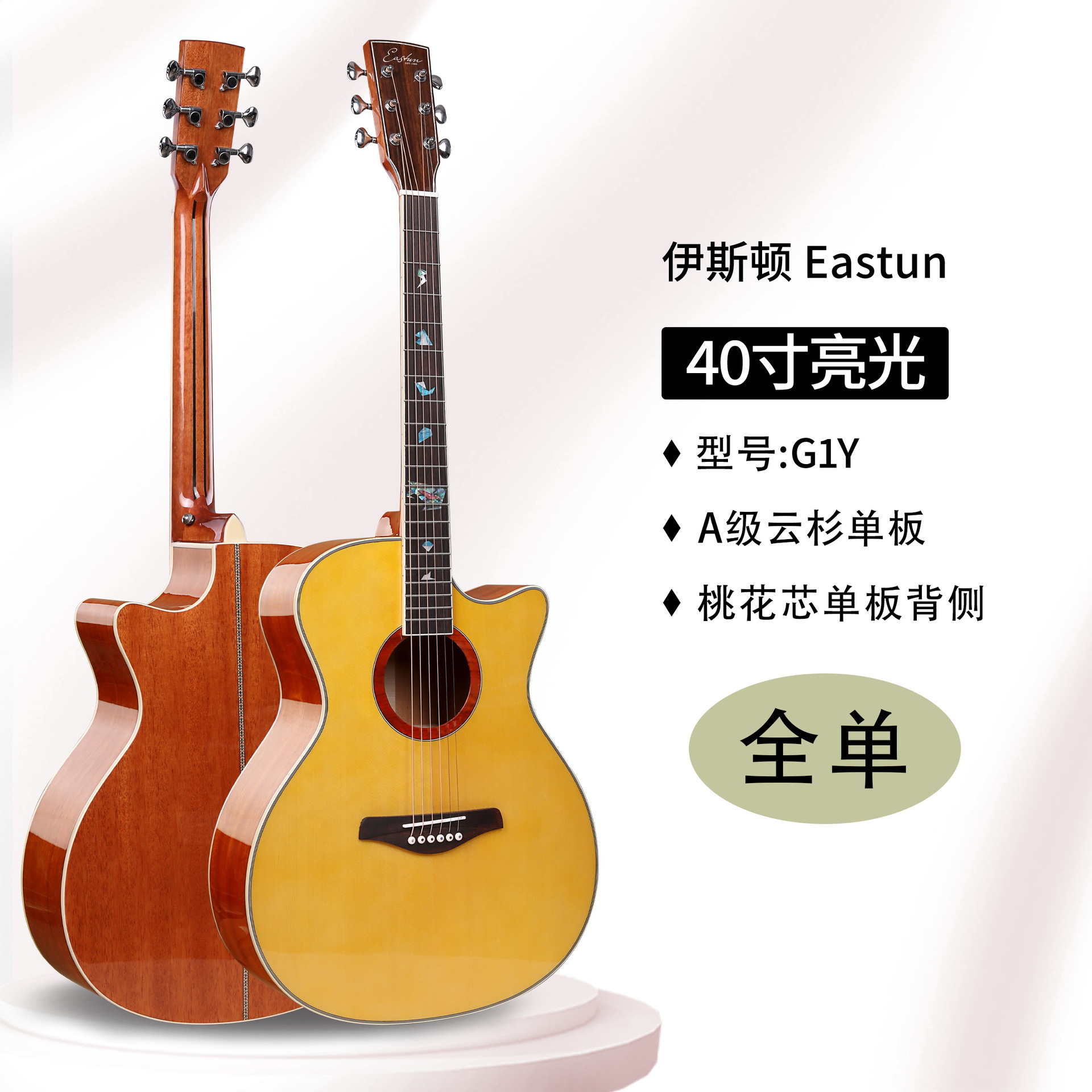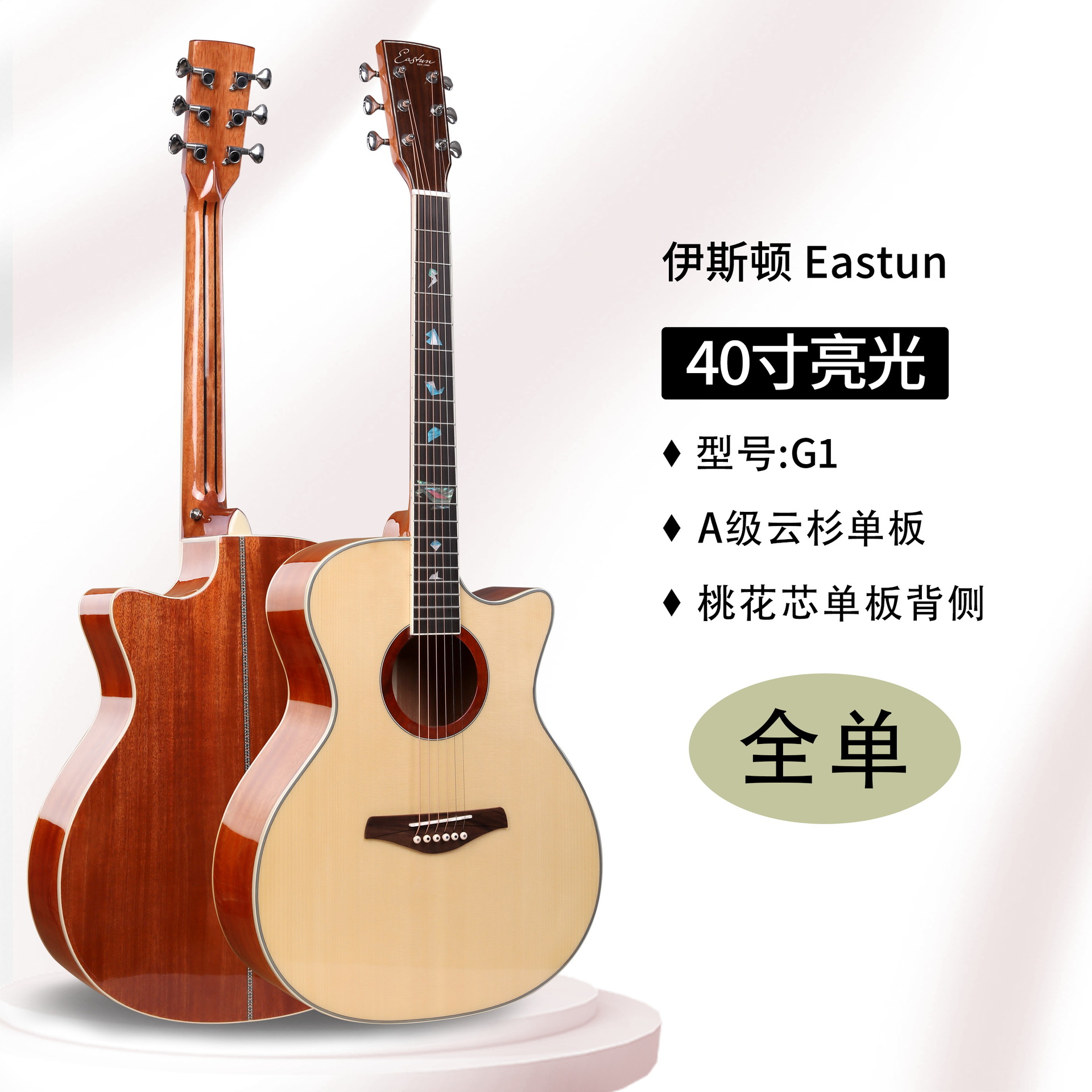 공장 직판매 EASTUN 스프루스 원목 컷아웃 40inch 풀 싱글 하이글로시 포크 기타 공장스토어 가기