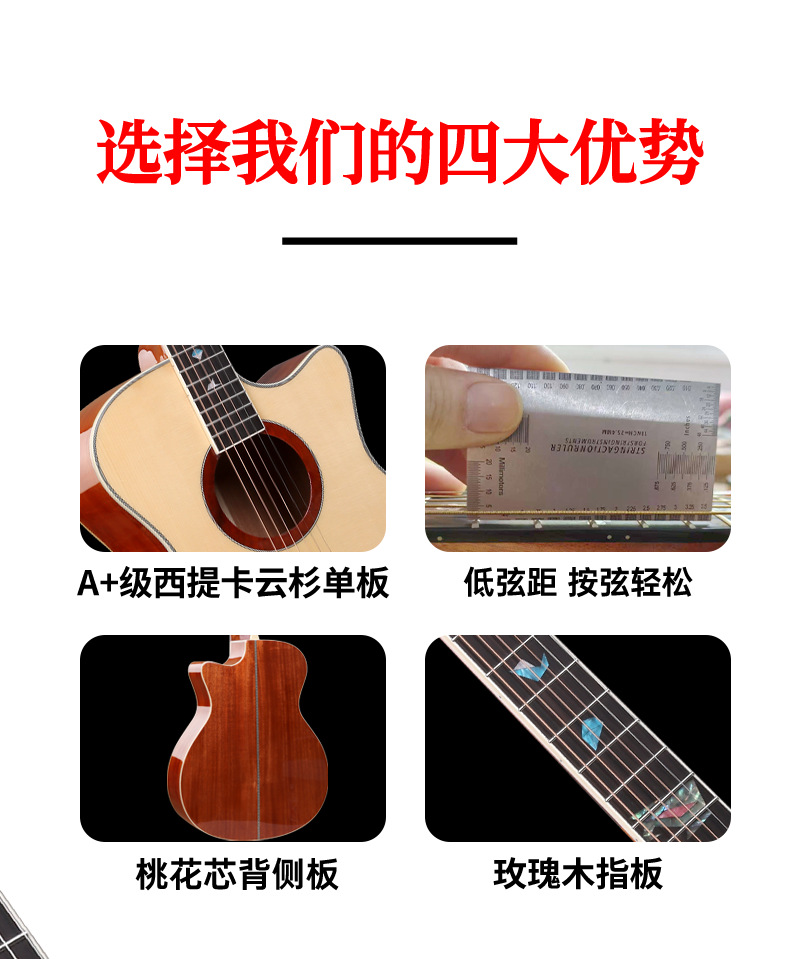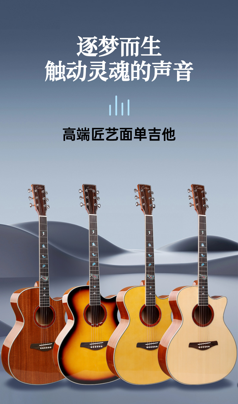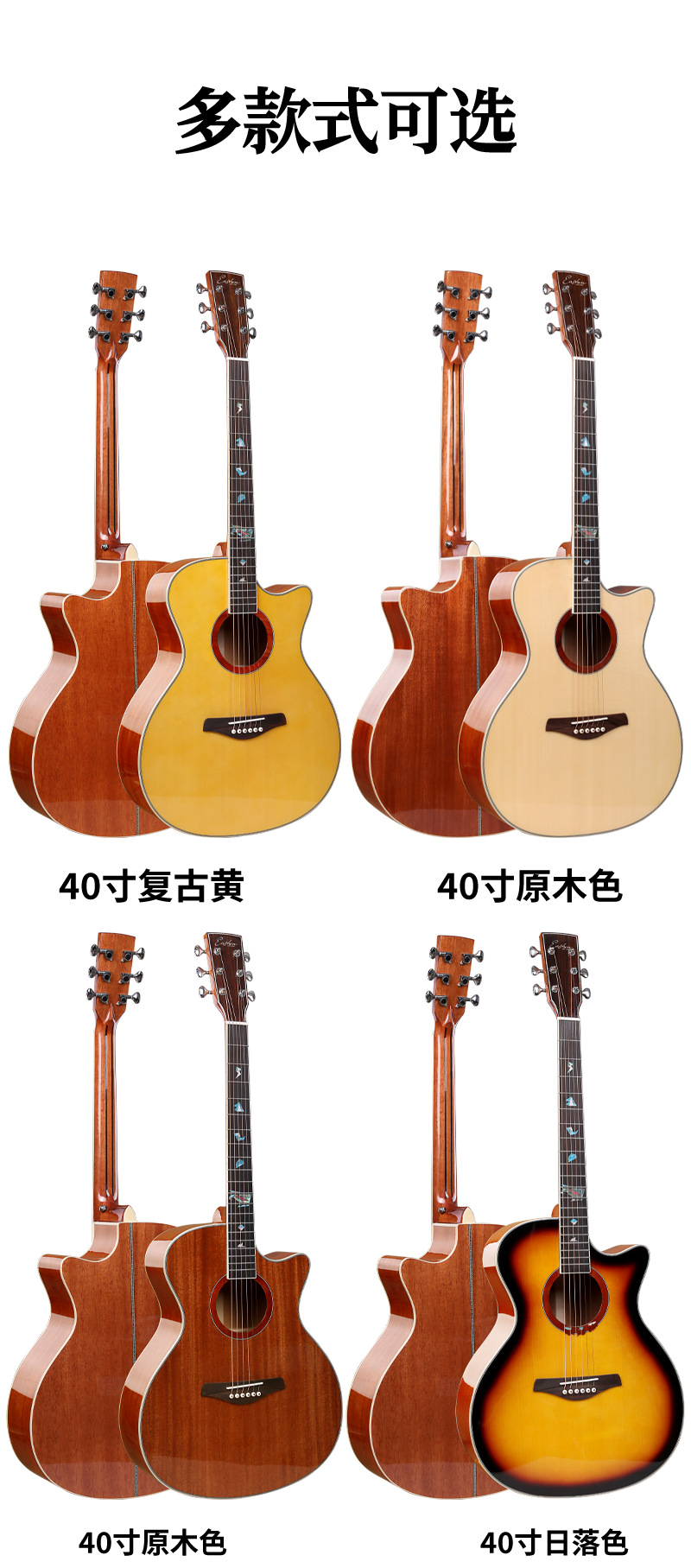 공장 직판매 EASTUN 스프루스 원목 컷아웃 40inch 풀 싱글 하이글로시 포크 기타 공장스토어 가기