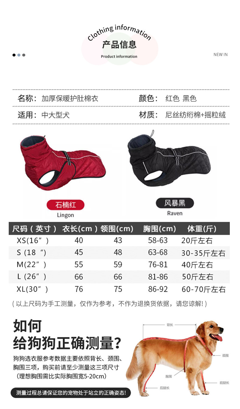 새로운 강아지 옷 가을 겨울 강아지 면옷 따뜻한 재킷 중대형견 애완동물 옷 공장 도매스토어 가기
