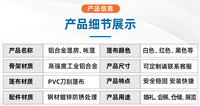 篷房属于定制产品,站内所标价格均为每平方参考价,具体价格请与在线客服沟通,未与客服沟通私自下单,本店默认发一平方篷布,敬请知晓!