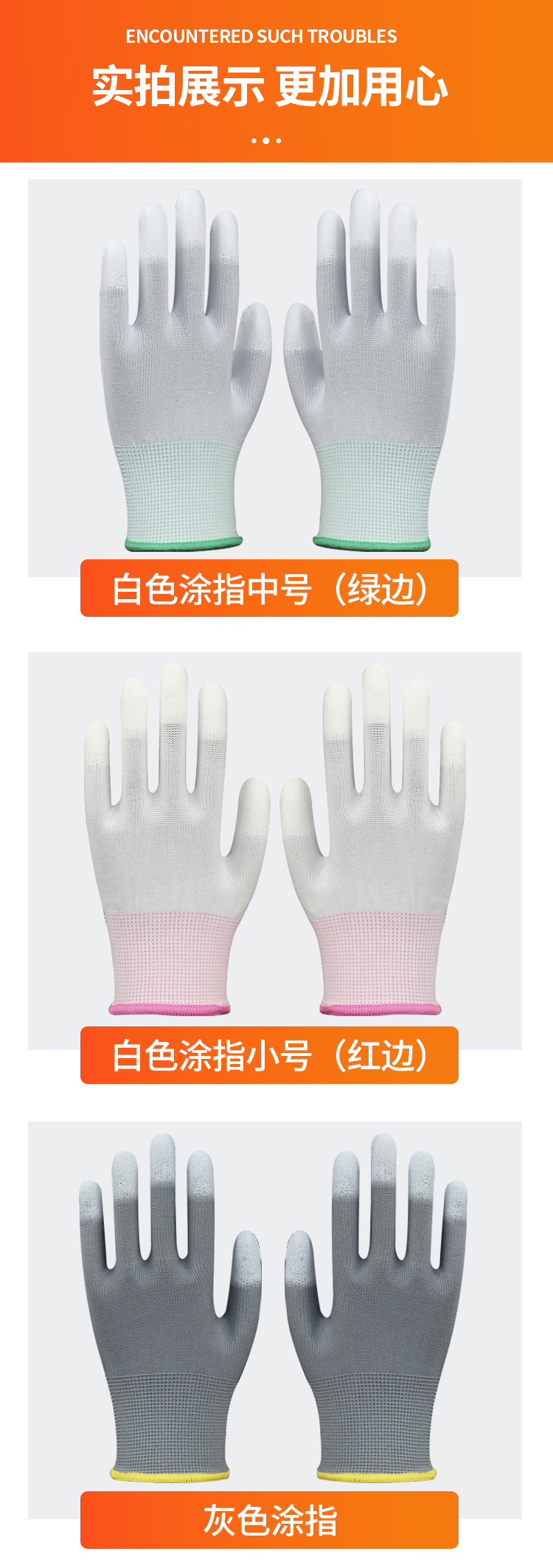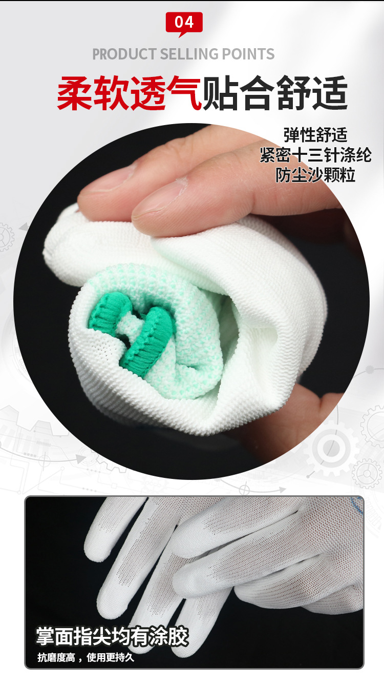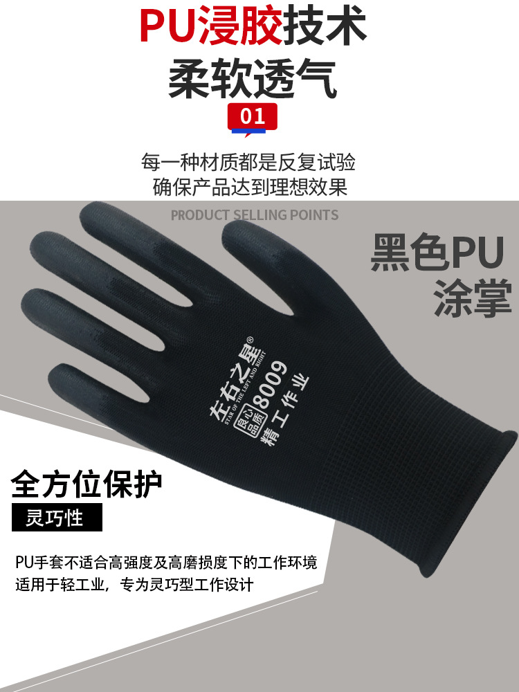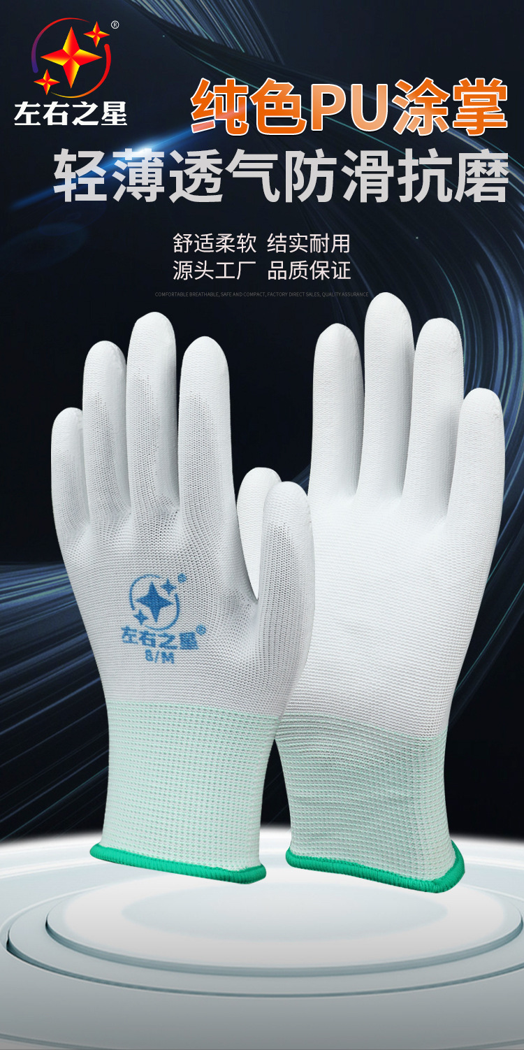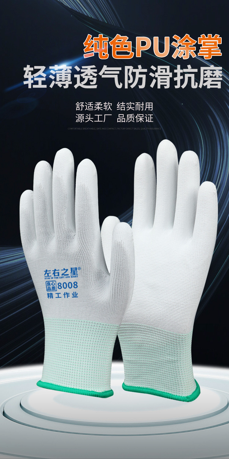 좌우스타 터치패드 장갑 미끄럼 방지 방진 부드럽고 통기성 있는 고무 코팅 손가락 보호 전자 공장 작업 보호 장갑