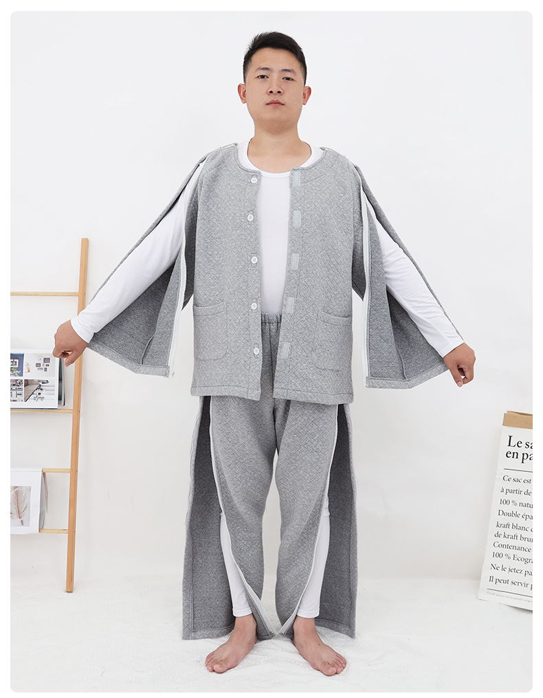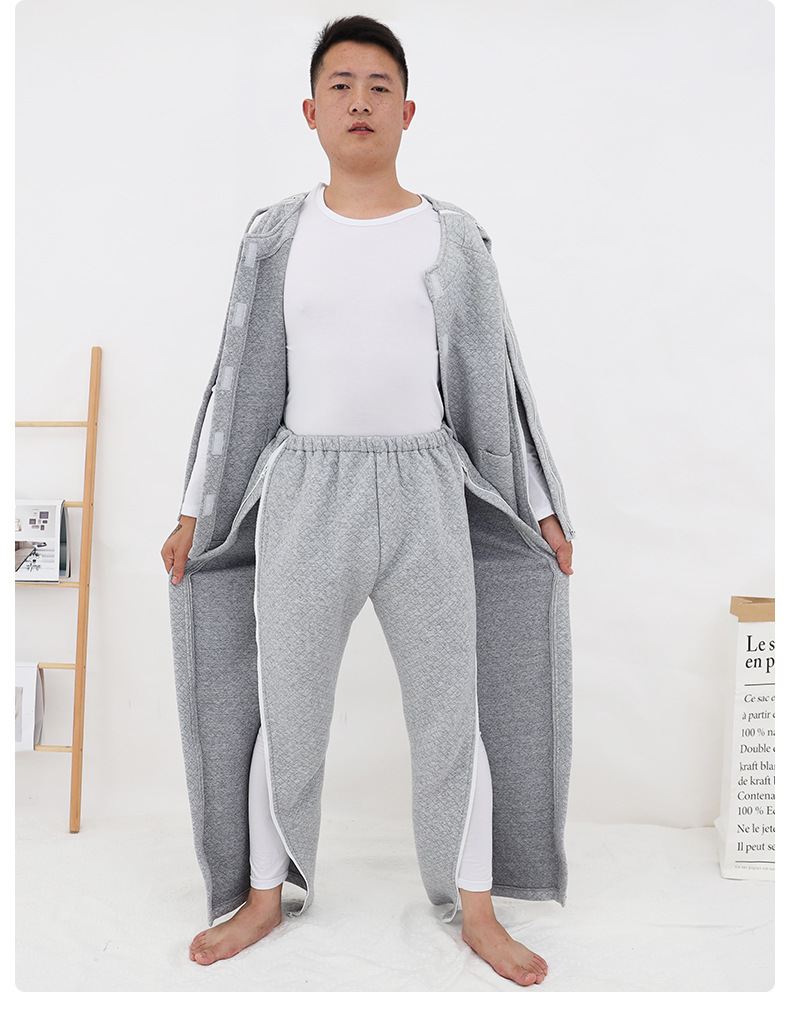 남성용 봄과 가을 착용하기 쉬운 병원 가운 다리, 발 및 팔 골절 수술 후 관리 가운 침대 타기 마비 노인 가운