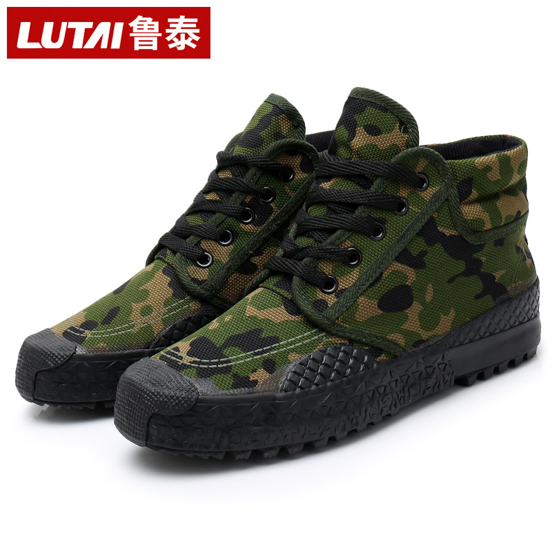 루 타이 봄과 가을 건설 현장 고무 신발 노동 신발 고무 단독 하이 탑 군사 훈련 신발 내마모성 코튼 캔버스 훈련 신발