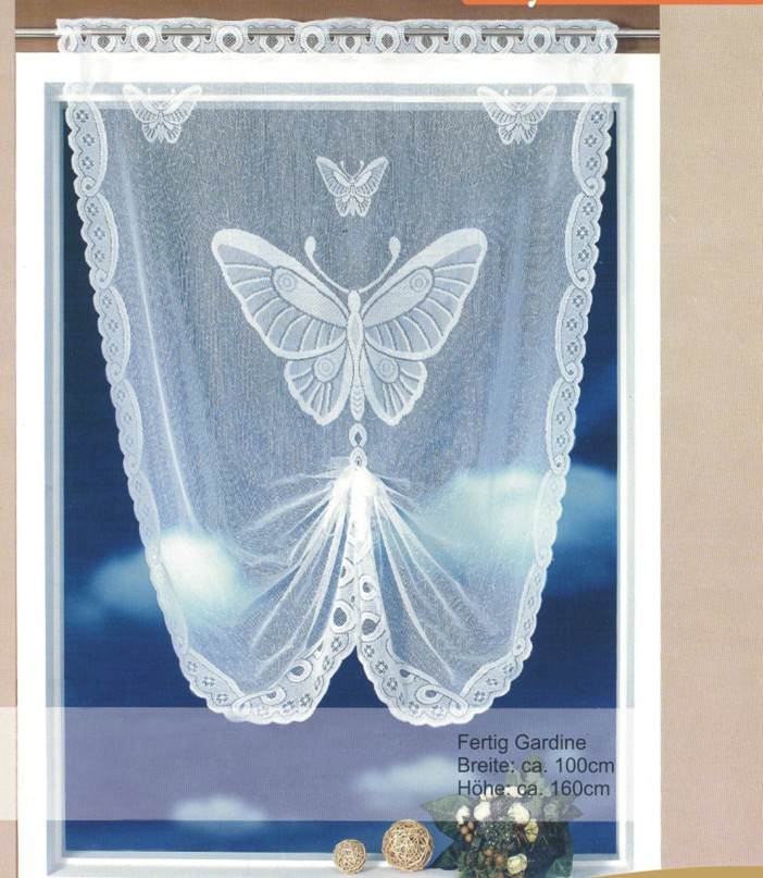 欧美家庭咖啡帘经编蕾丝窗帘小帘蝴蝶气球窗帘支持验厂外销厂家