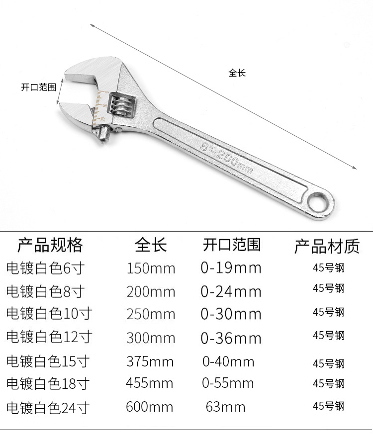 조정 가능한 렌치 도구 Daquan 범용 느슨한 렌치 다기능 대형 오픈 엔드 정품 작은 렌치 느슨한 렌치 보드스토어 가기