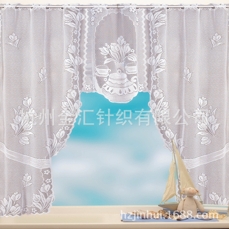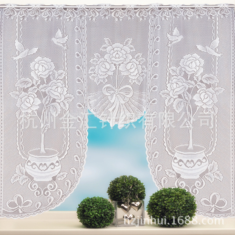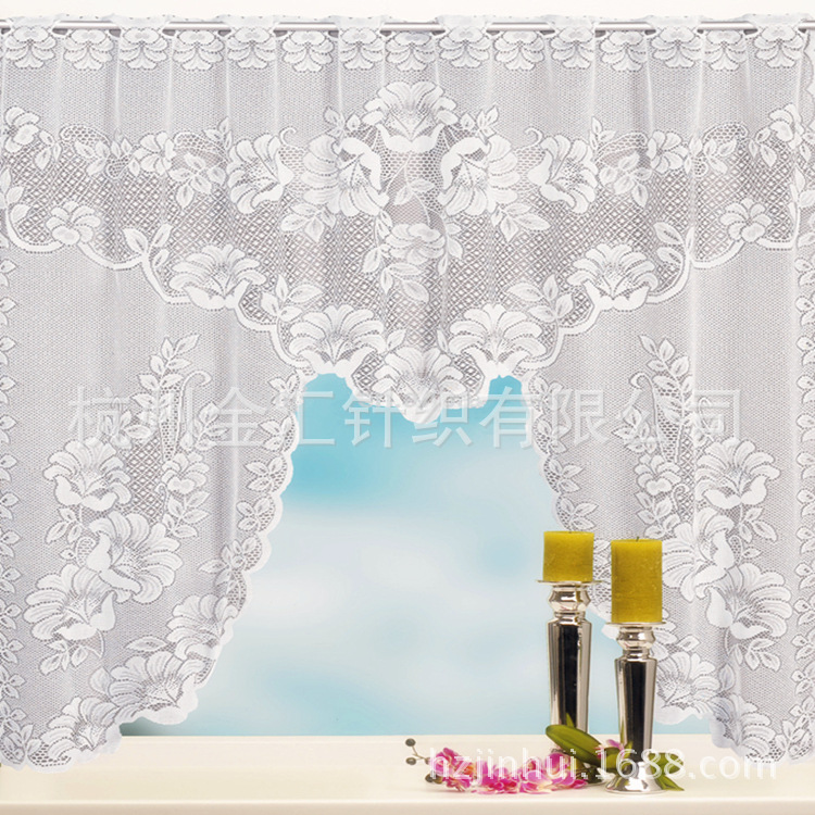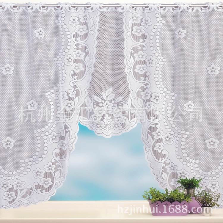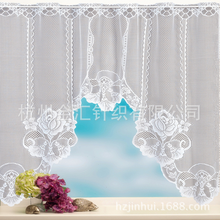 厂家直销清仓现货欧美蕾丝C型厨房帘蕾丝外贸厨房帘白色小门帘
