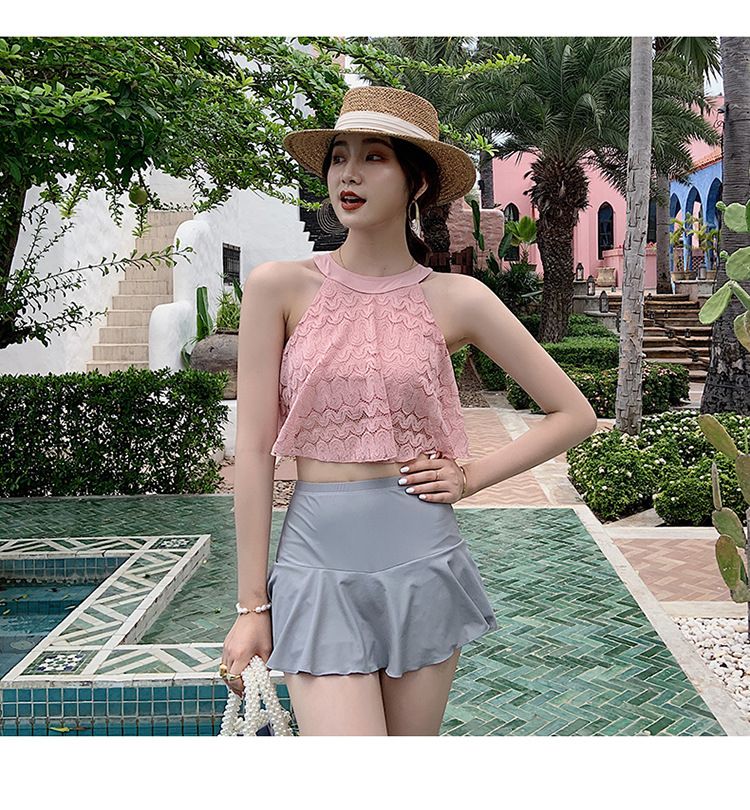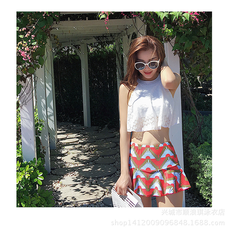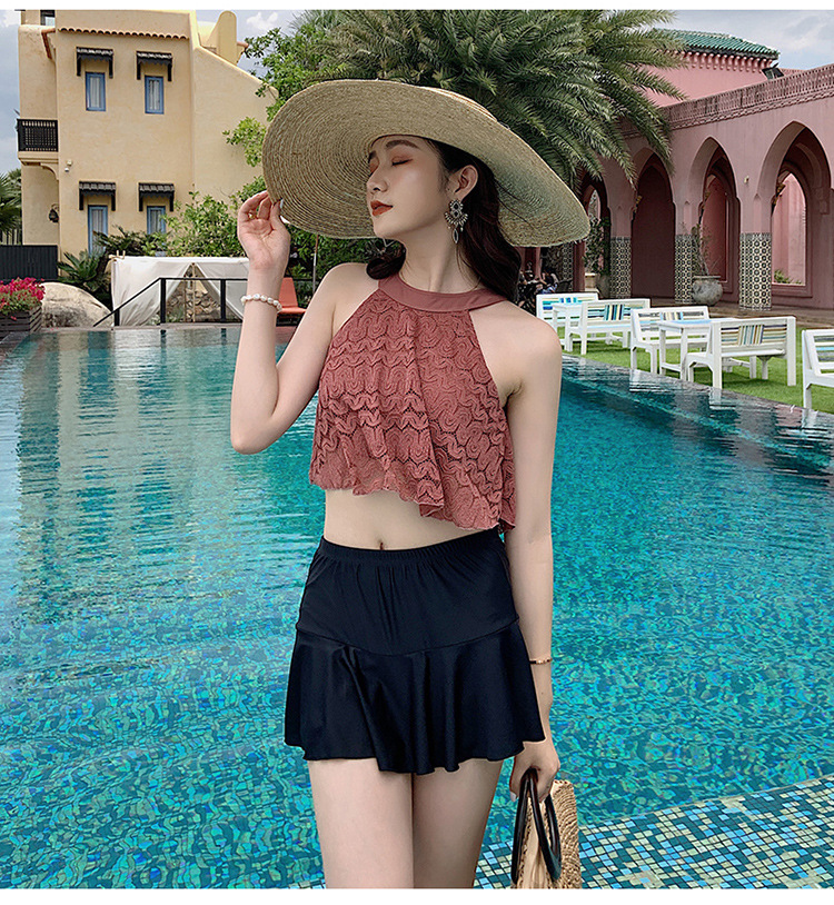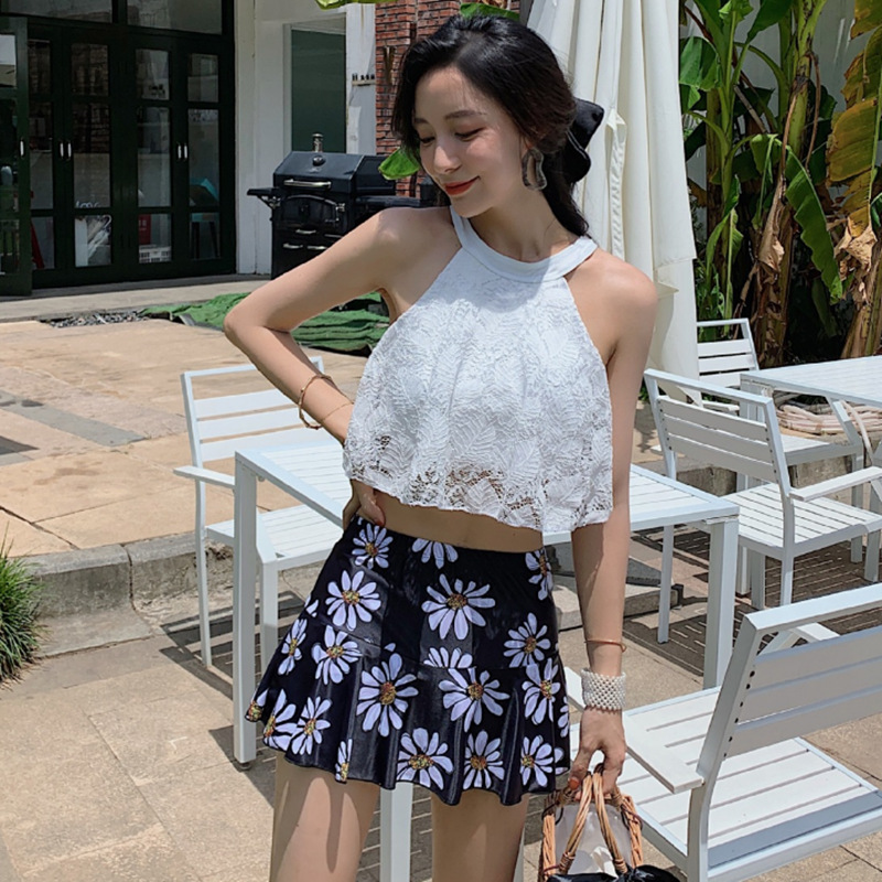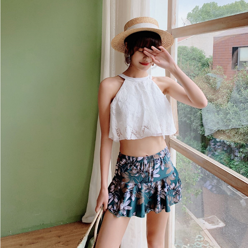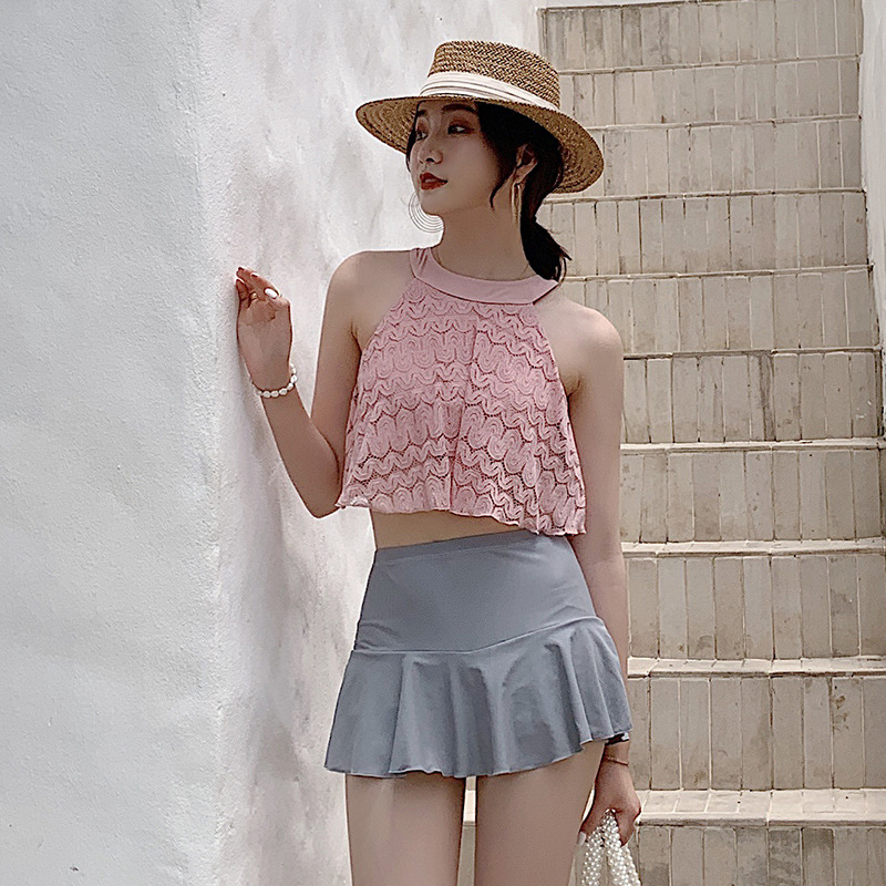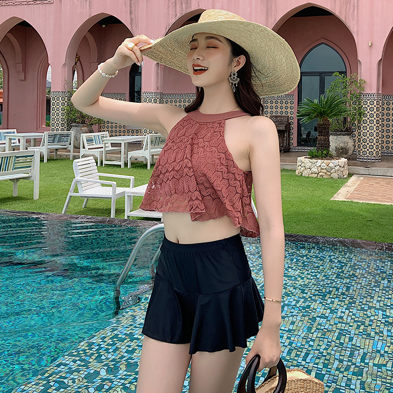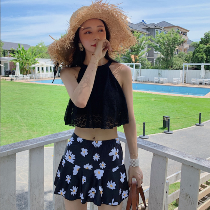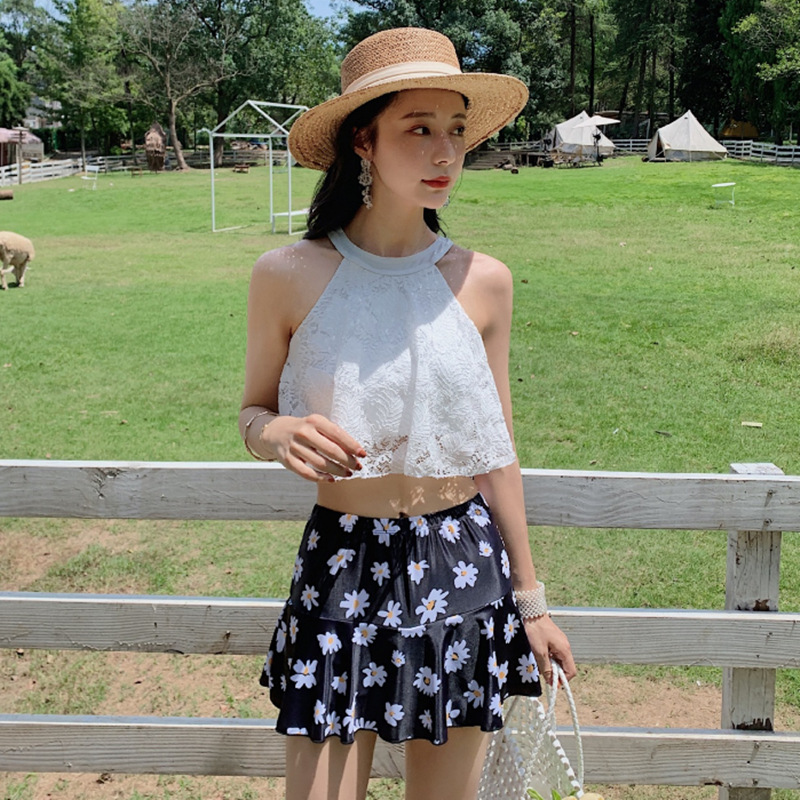 일본 신상 분리형 수영복 여성용 홀터넥 신선한 레이스 스커트 스타일 한국 스타일 온천 비키니 수영복스토어 가기