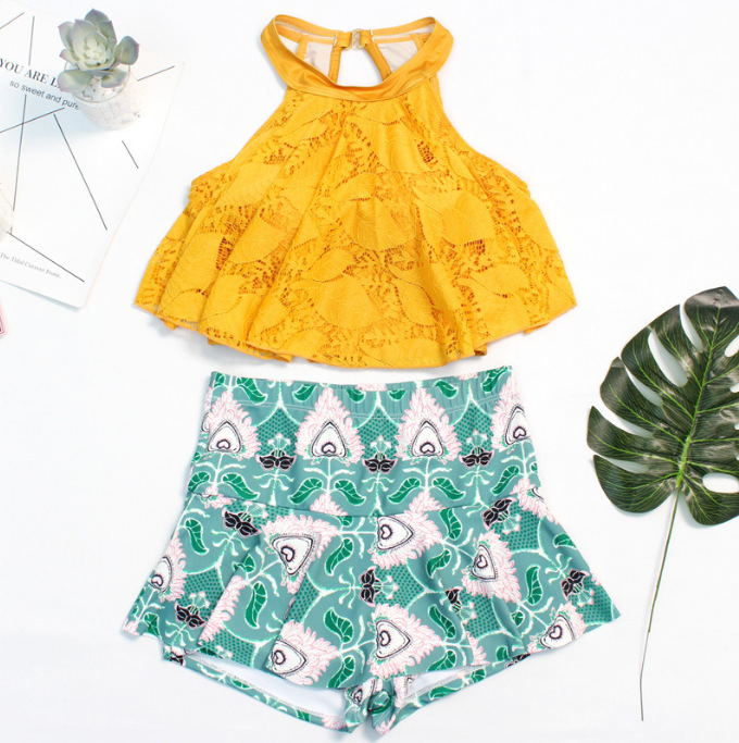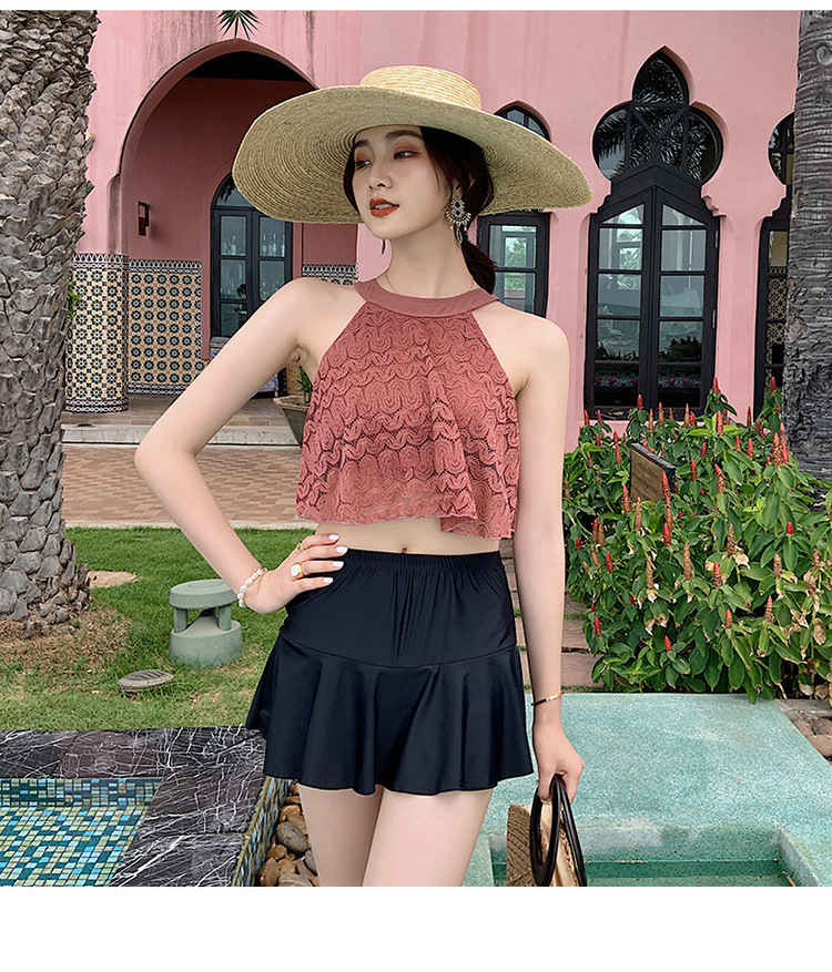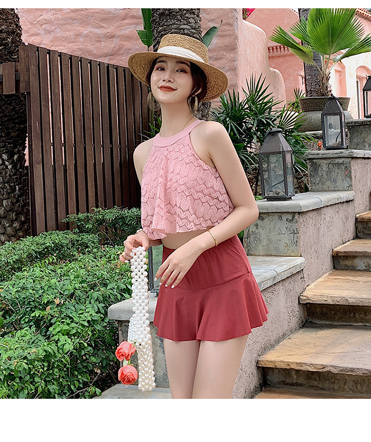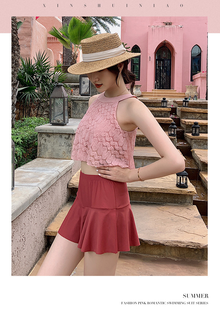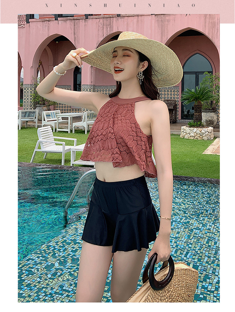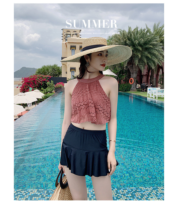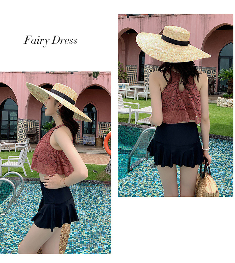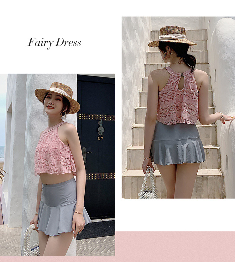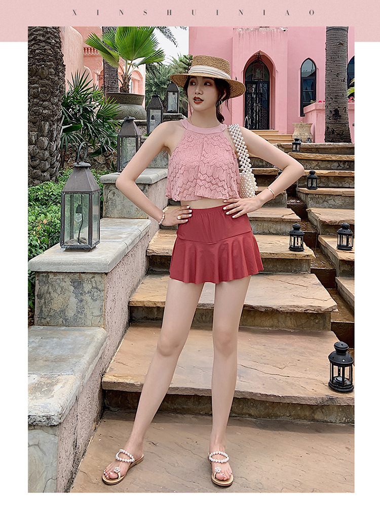 일본 신상 분리형 수영복 여성용 홀터넥 신선한 레이스 스커트 스타일 한국 스타일 온천 비키니 수영복스토어 가기