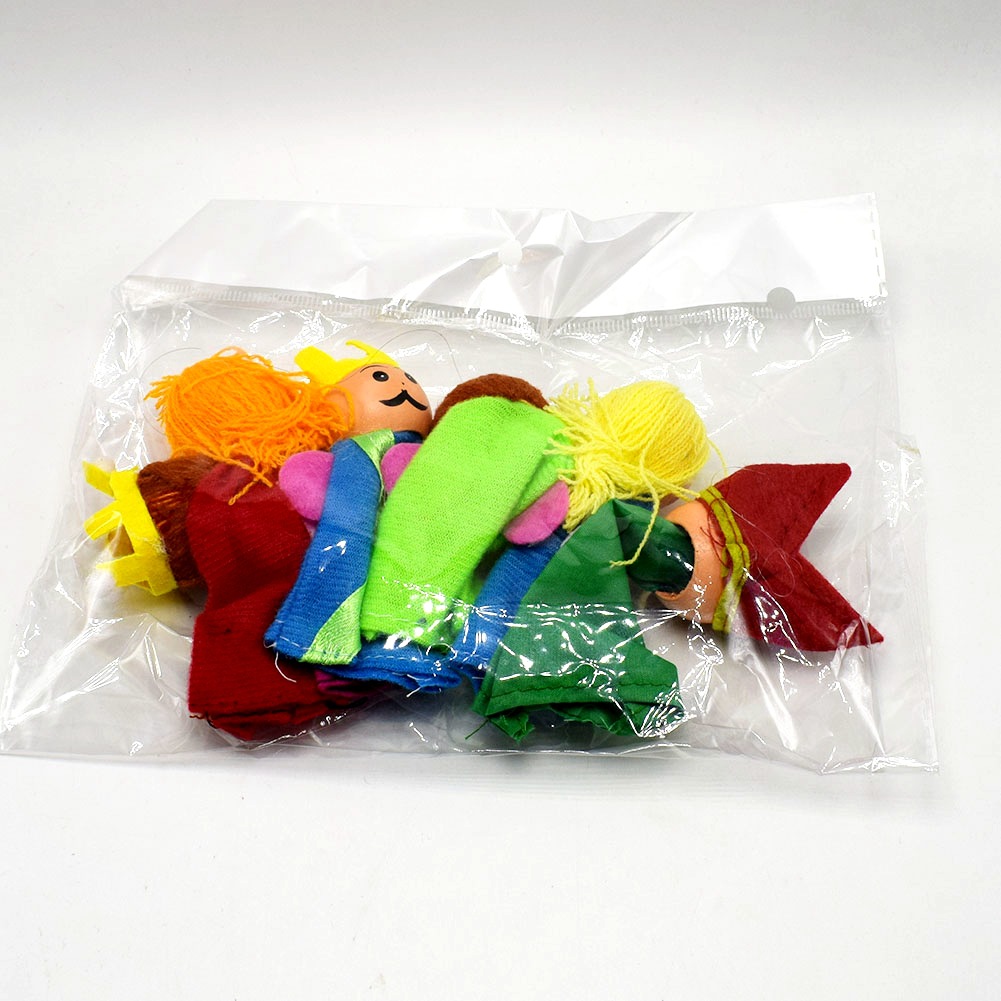 一套包括6个指偶玩具如图,用opp袋包装好的