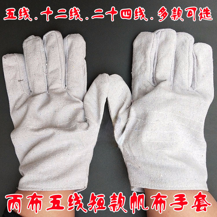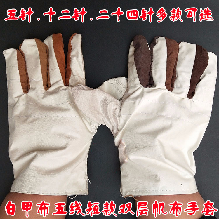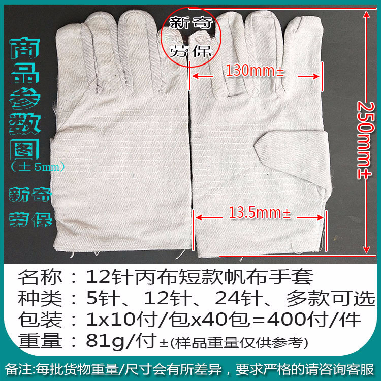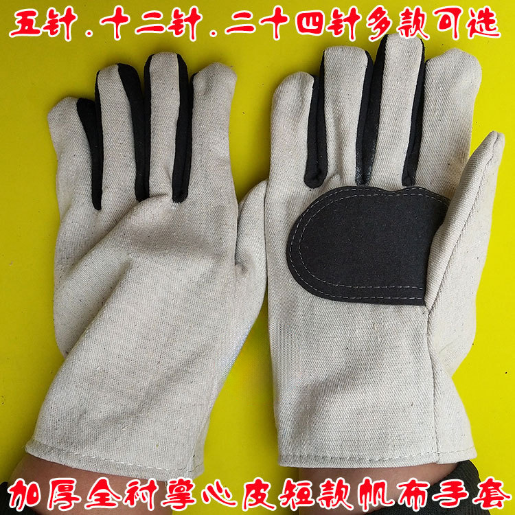 【商品名称】:多款可选6线12线24线掌心皮白甲布丙布短款帆布电焊手套