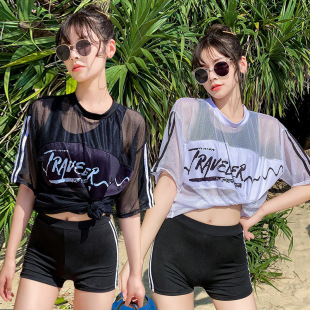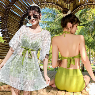 泳衣女分体平角运动款学生防晒度假温泉韩版ins泳装三件套批发