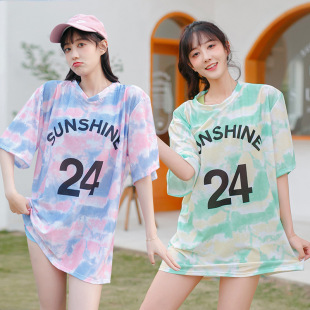 泳衣女士分体学生平角裤运动风长袖防晒遮肉显瘦两件套泳装批发