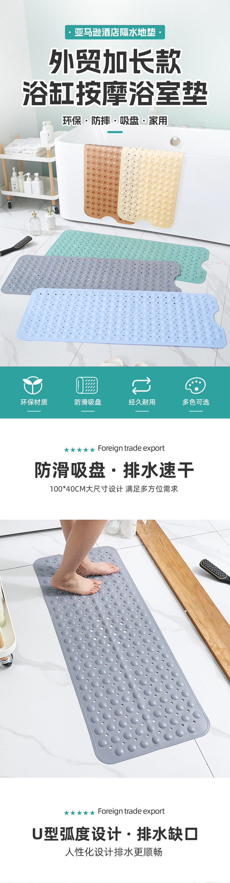크로스보더 PVC 욕실 미끄럼 방지 매트 샤워 욕조 흡입 컵 마사지 아마존 목욕 호텔 욕실 샤워 매트스토어 가기