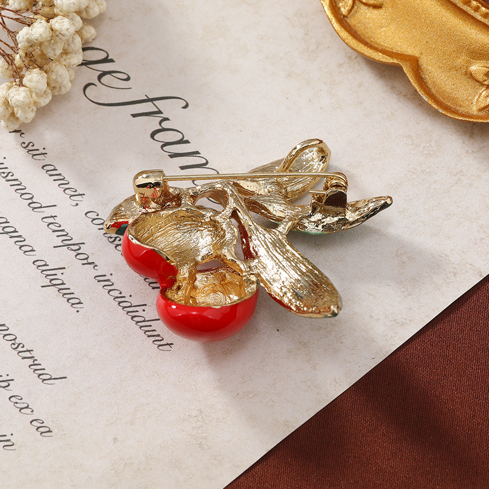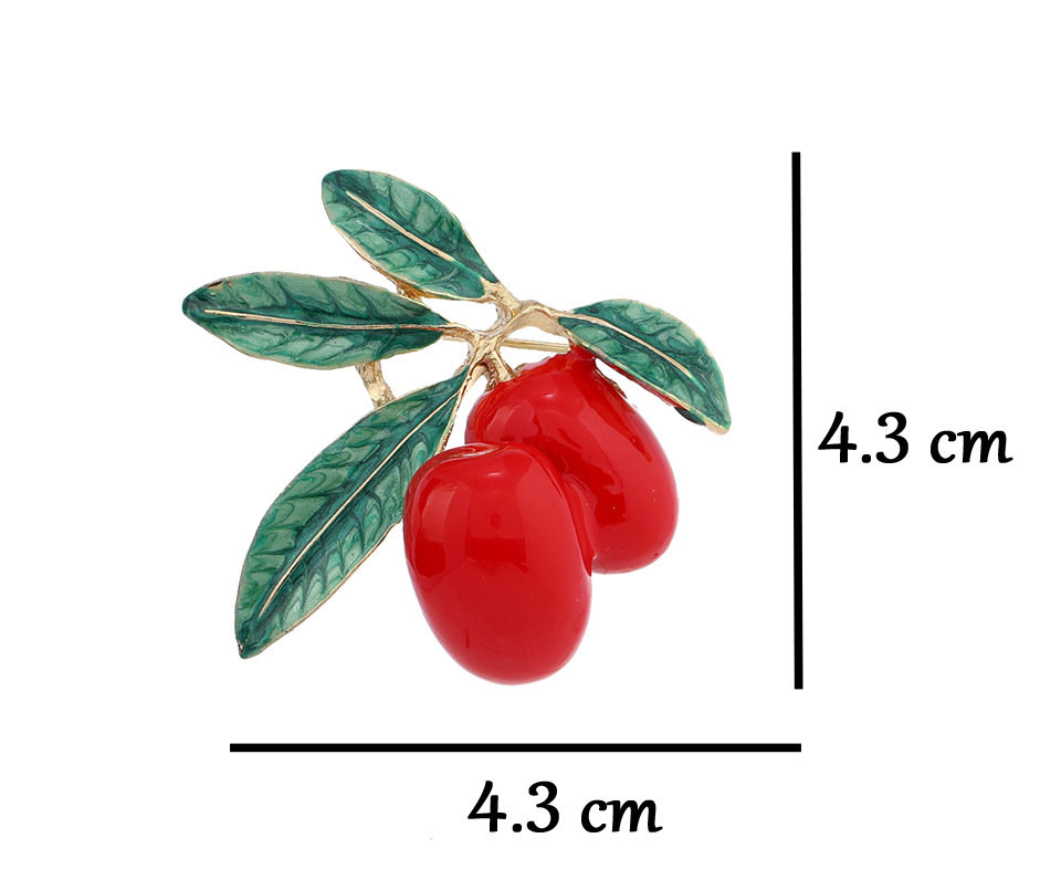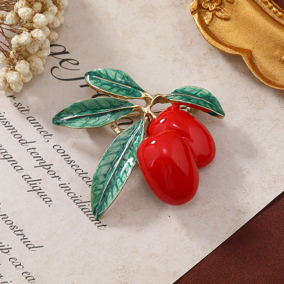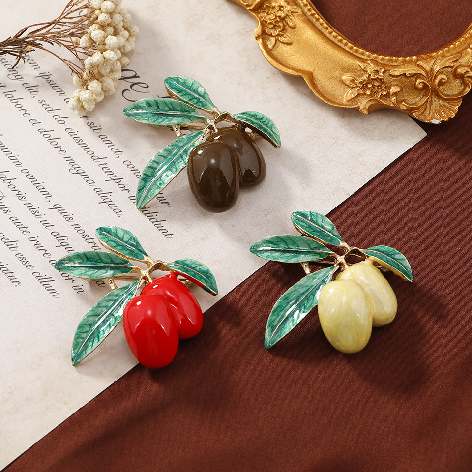 빈티지 오일 드롭 모조 에나멜 합금 대추 브로치 패션 체리 올리브 가지 핀 여성 의류 액세서리