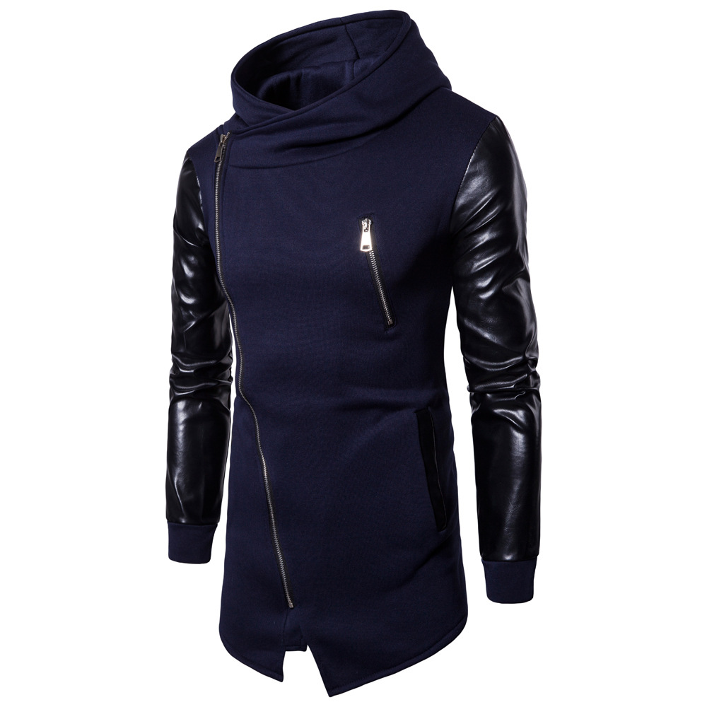 AliExpress 유럽 사이즈 남성용 봄과 가을 새로운 캐주얼 슬리브 가죽 스웨터 남성용 한국 스타일 남성용 지퍼 스웨터스토어 가기