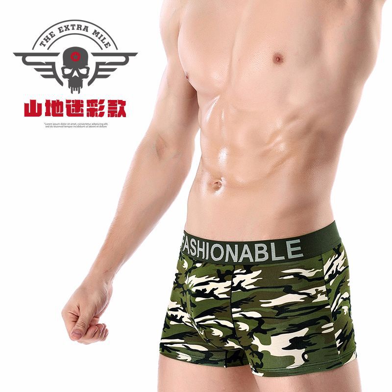 제조 업체 도매 남자의 면 위장 인쇄 복서 속옷 유행 남자의 군사 팬 통기성 복서 브리프 머리 생성스토어 가기