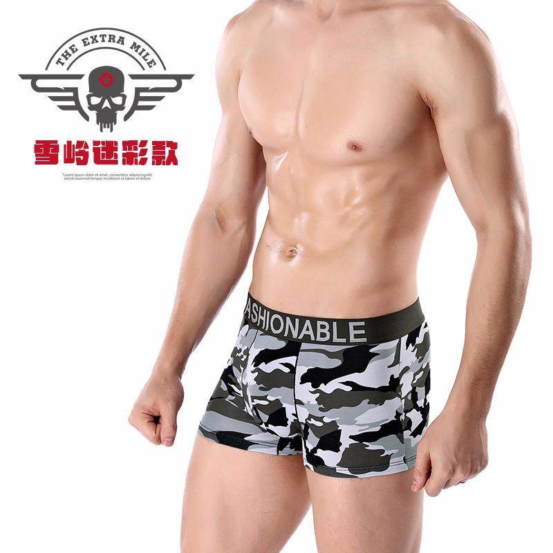 제조 업체 도매 남자의 면 위장 인쇄 복서 속옷 유행 남자의 군사 팬 통기성 복서 브리프 머리 생성