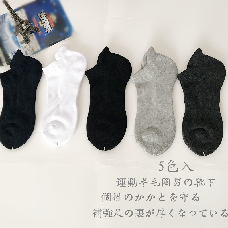 봄과 여름 새로운 성격 작은 발 뒤꿈치 반 테리 남자 보트 양말 면 양말 입체 작은 귀 스포츠 보트 양말 남자 양말스토어 가기